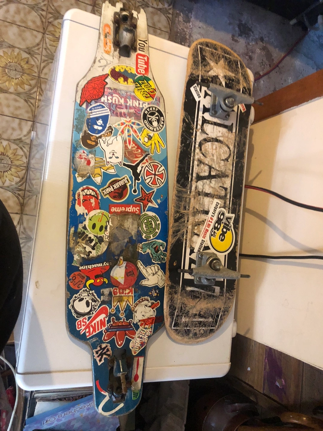 Selling a used skateboard and longboard. Both have signs of wear and tear, as you can see in the photos, but they're still functional. Great for someone looking to try out skateboarding or longboarding without spending too much!