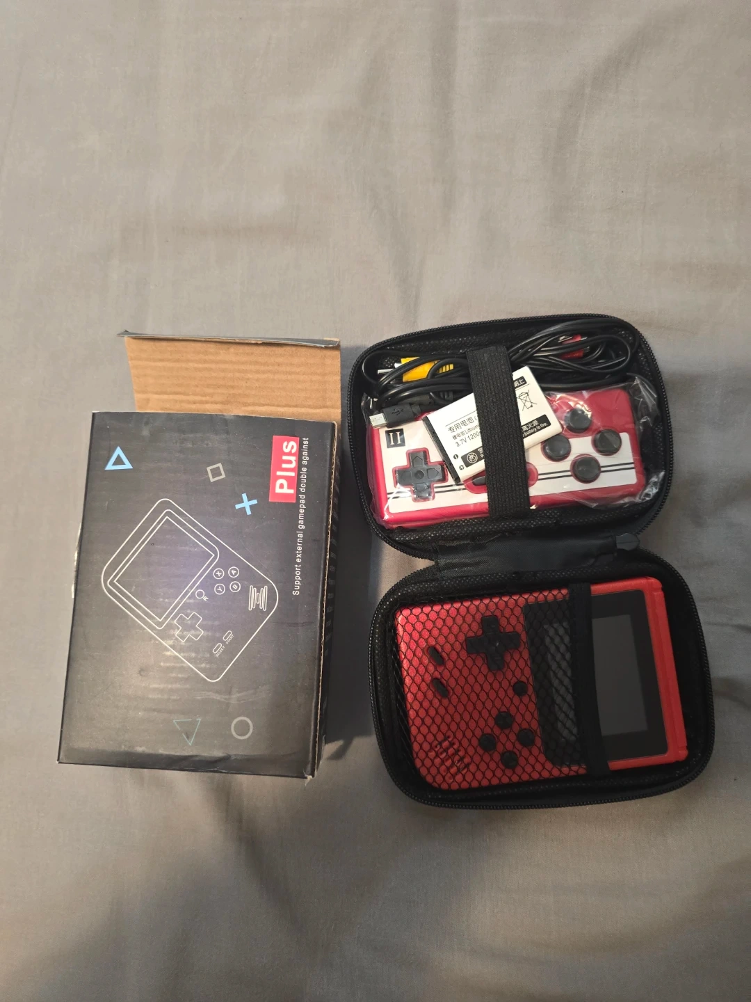 Selling this awesome Retro Gaming device. Comes with case, device, battery, extra remote (2 player games) and an aux cord for connecting to TV. Play classic games like Mario, tetris and others in this awesome emulator. 800 games pre installed.