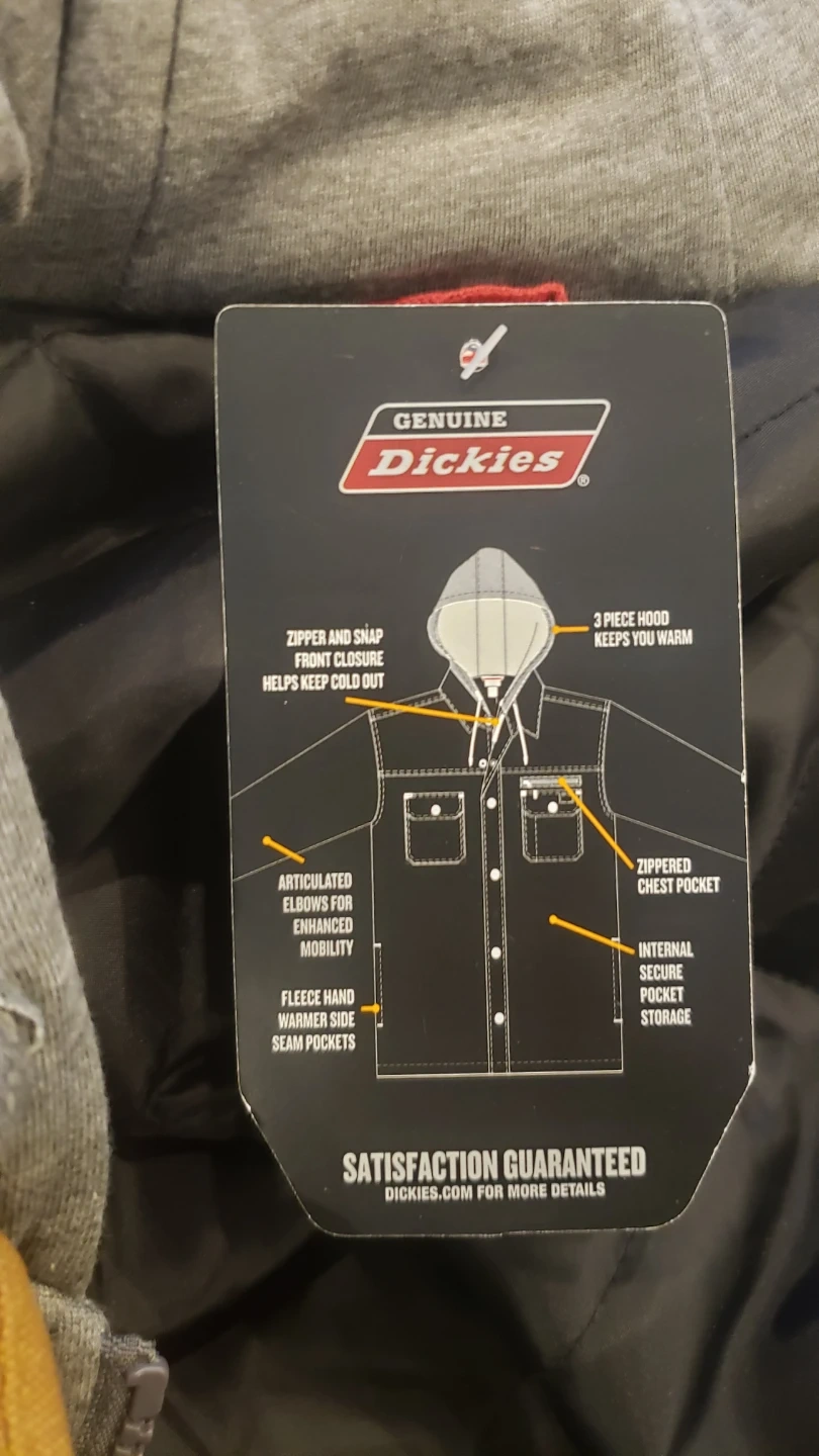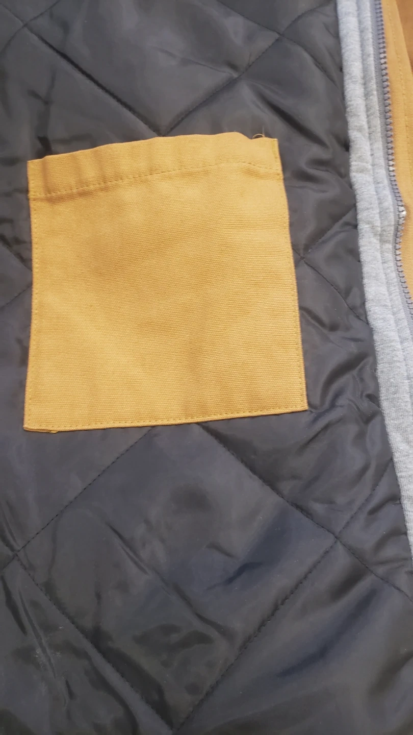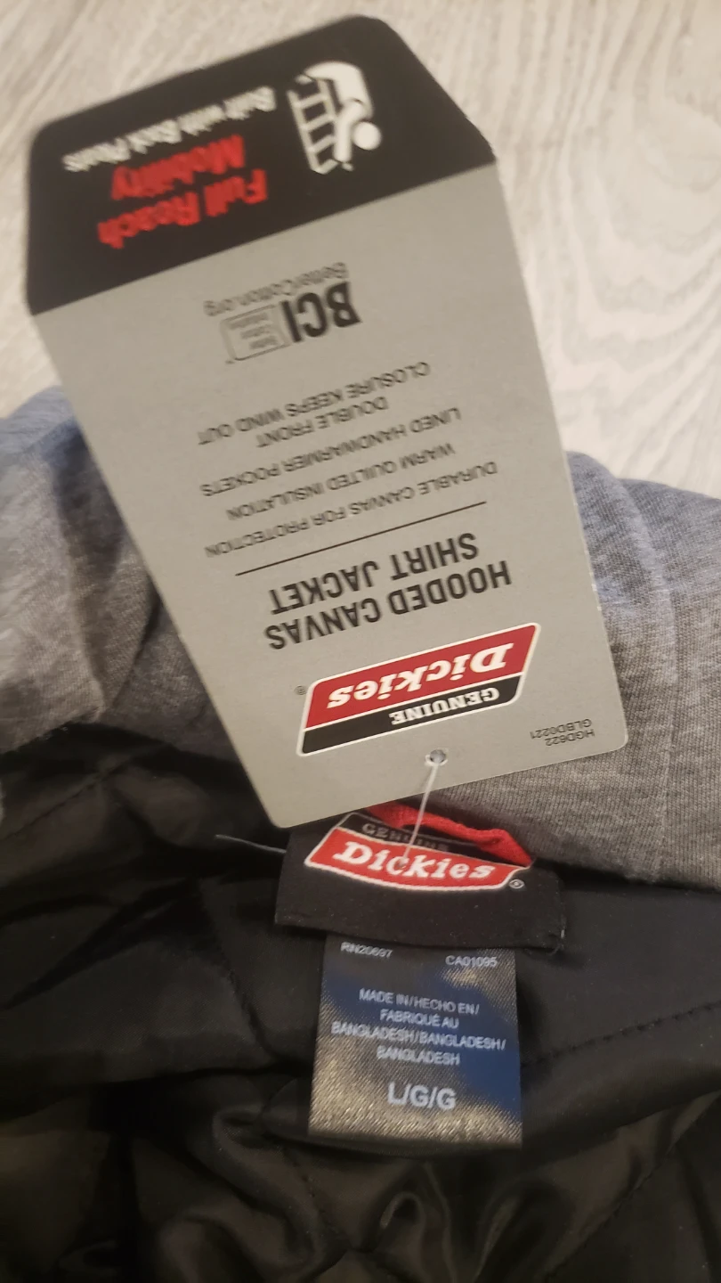 I'm selling a Dickies hooded canvas shirt jacket in size large. It's a warm, quilted insulated jacket with lined handwarmer pockets and a double front closure to keep the wind out. The jacket is a nice brown colour with a grey hood. Feel free to message me if you're interested!