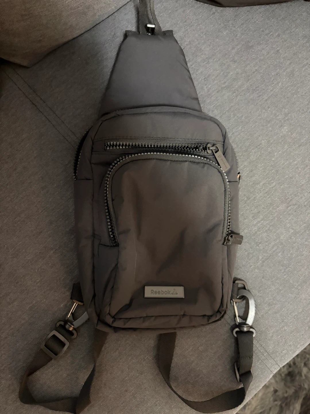 This is a Reebok sling bag in great condition! It's a stylish and convenient way to carry your essentials. The bag features multiple zippered compartments to keep your belongings organized. Perfect for everyday use or travel!