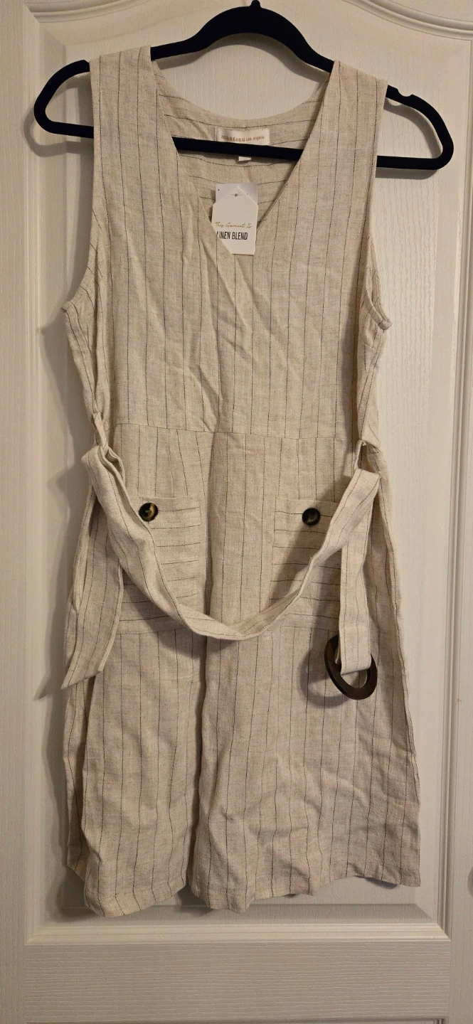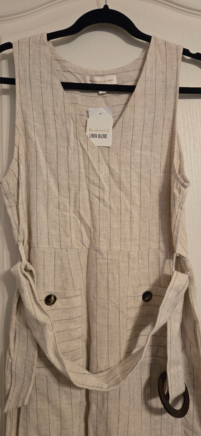 This Montague Los Angeles dress is a lovely linen blend. It features a stylish striped pattern and a flattering silhouette. Perfect for a casual day out or a summer gathering!