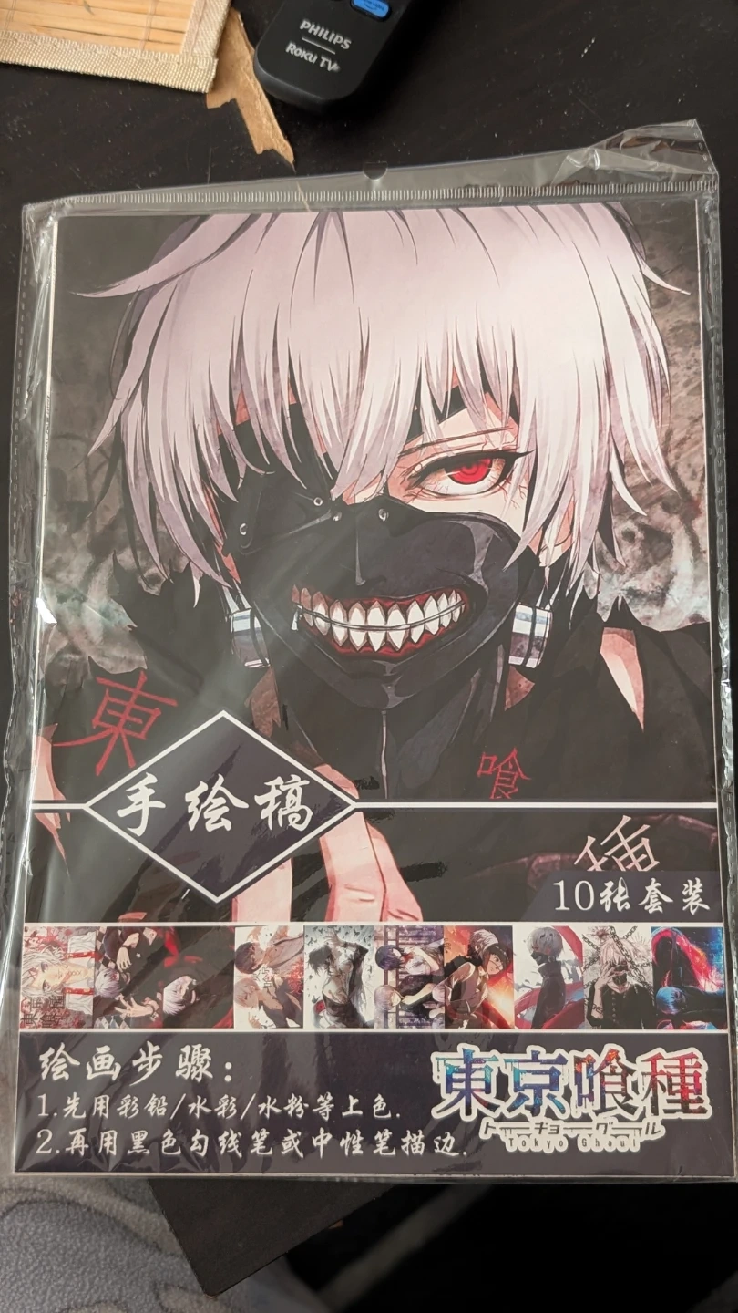 Selling a Tokyo Ghoul anime merchandise bundle! Includes a poster, ruler, sticker, and keychain. All items are in new condition and still in their original packaging