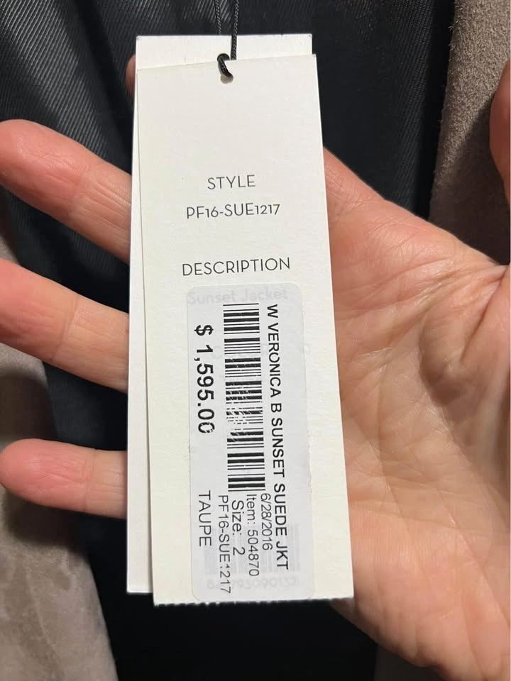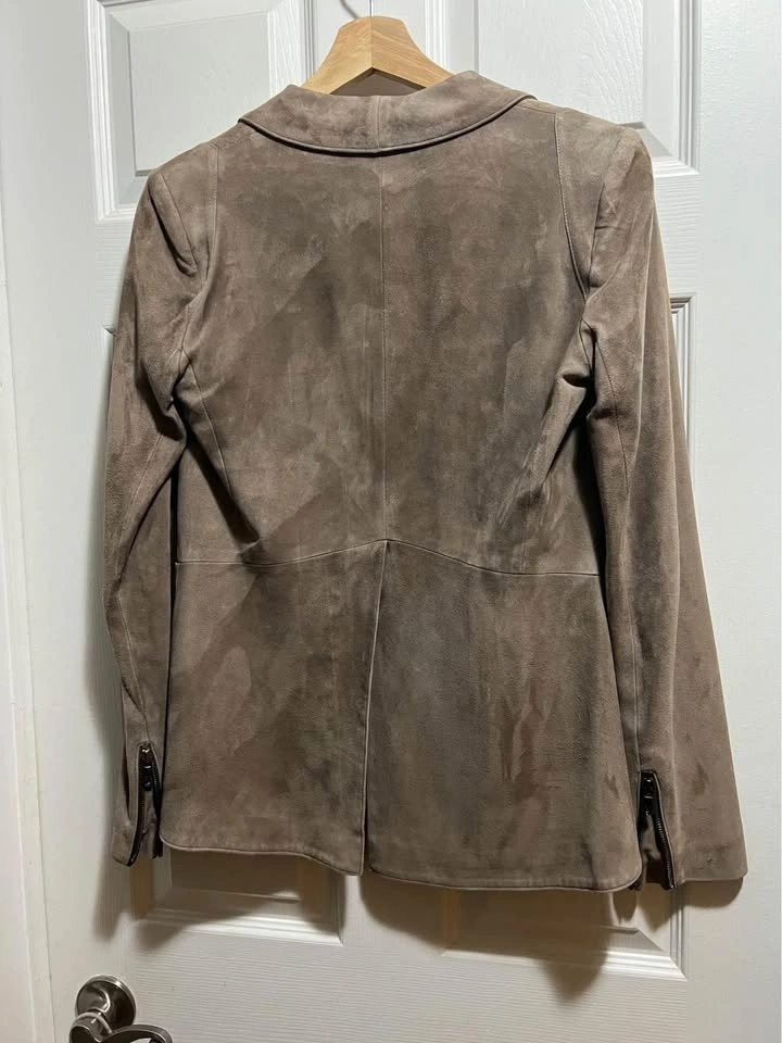 Taupe suede. Butter soft. Brand new, never worn. Size 2 Veronica beard suede jacket. Brand new, retails for $1595. With tag. Size 2 taupe sunset suede jacket. Thornhill near Promenade.