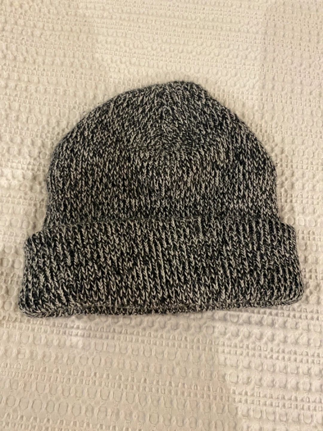 A cozy knit beanie, perfect for keeping warm on chilly days! The neutral black and white colour makes it easy to match with any outfit. It's in great condition and ready for a new owner