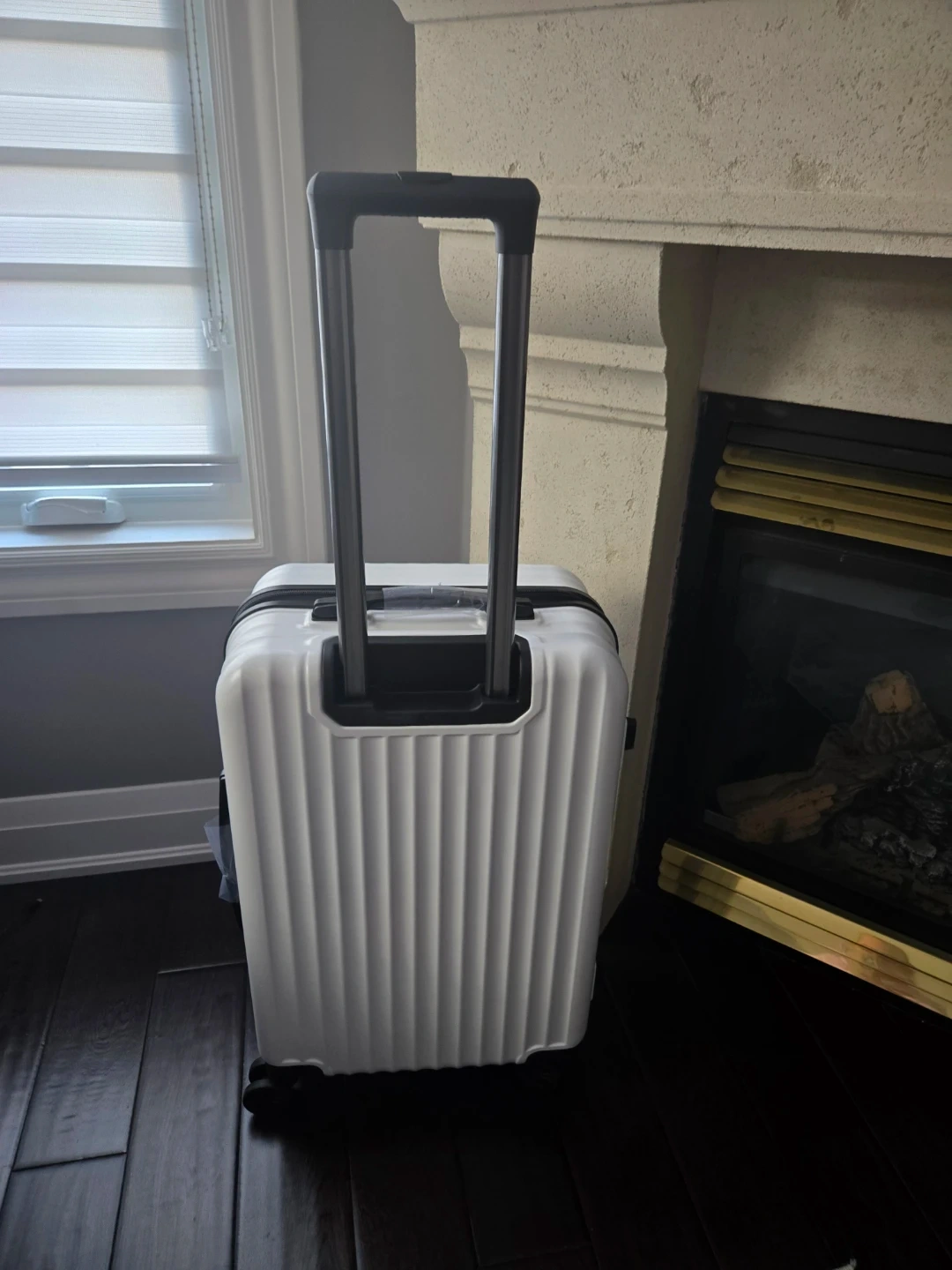 Looking to sell my medium-sized hardside suitcase in white! It's in great condition and ready for your next trip. It's a sleek and durable option for travel