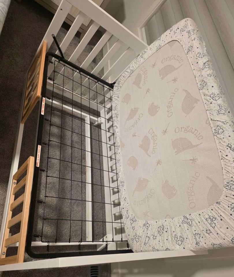 Stockcraft Crib with mattress and 2 gaurdrails