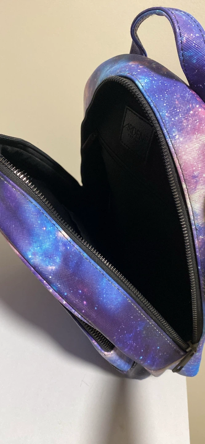 This is an Ardene mini backpack with a galaxy print. It's in great condition and perfect for carrying your essentials!