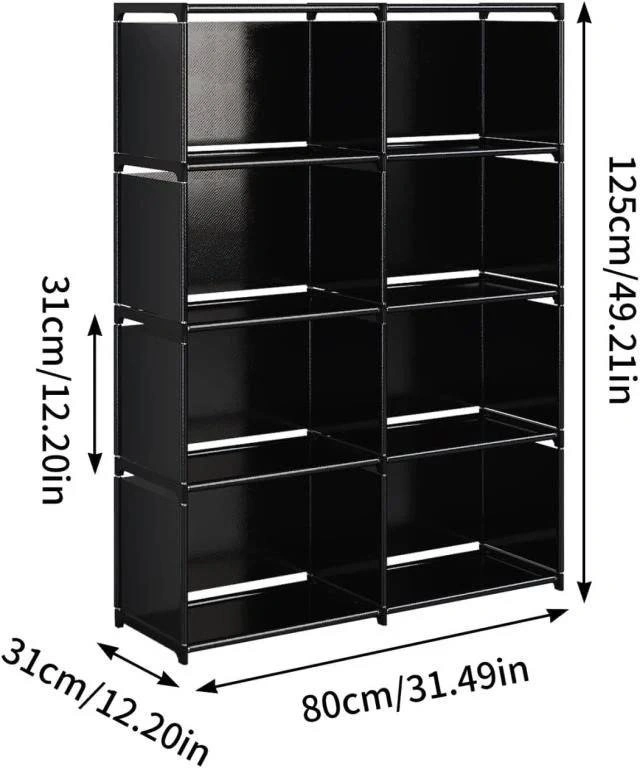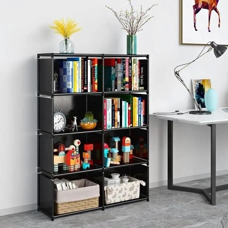 JIUYOTREE 5-Tiers Portable Bookshelf with Fabric Cloth at Back, 8 Cube Closet Storage Organizer Bookcase, Living Room, Study Room, Bedroom.