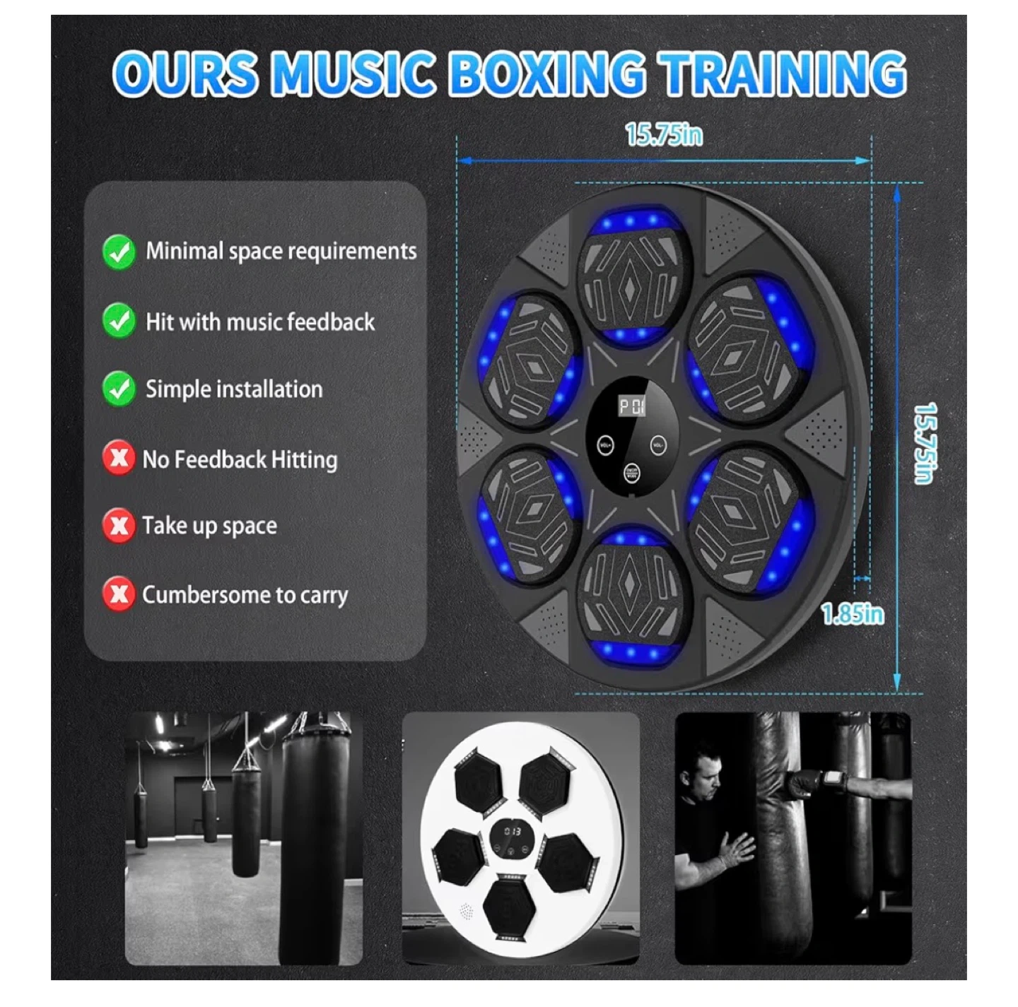 Get ready to groove and train with this music boxing machine! This wall-mounted smart punching target is perfect for adults and kids alike, offering a fun and effective way to get your workout in at home or the office.