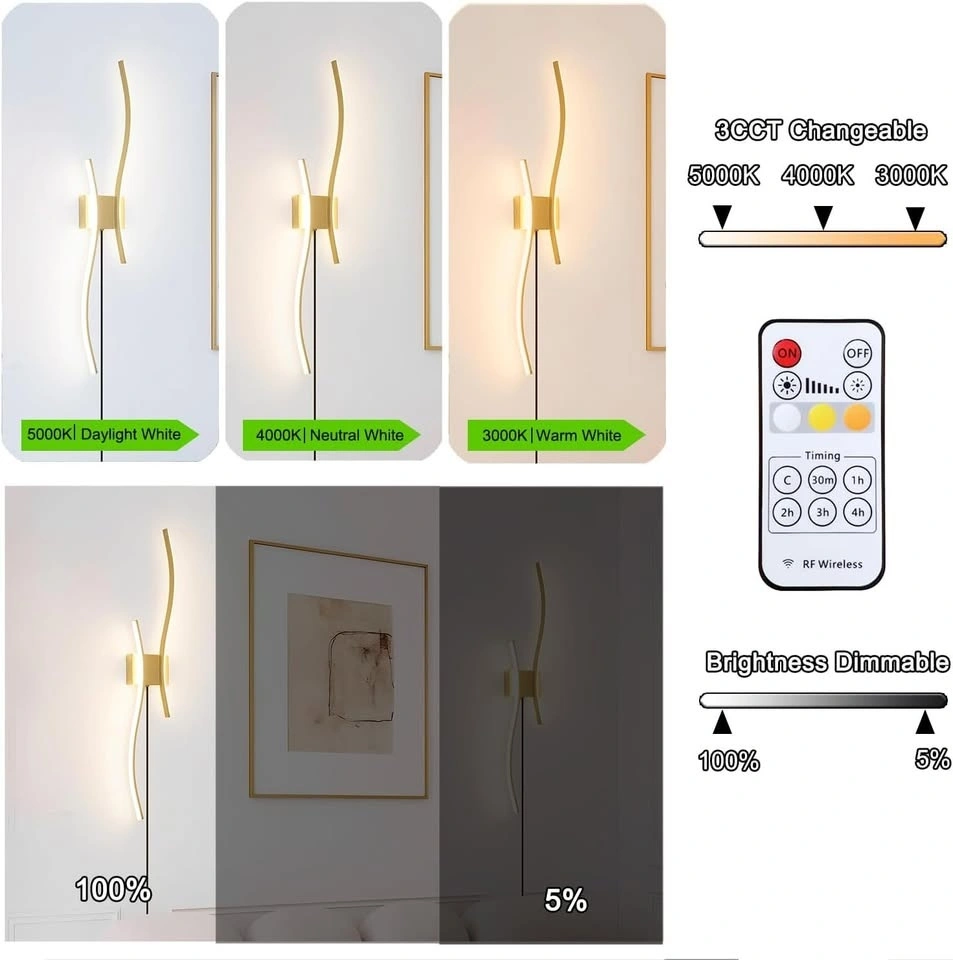 Daunton Modern Plug in Wall Sconce Set of 2, Gold Dimmable LED Wall Light with Remote Control, 3CCT Adjustable & Memory Function, Timer, Plug in Cord Wall Lamp for TV Wall Living Room Hallway Bedroom