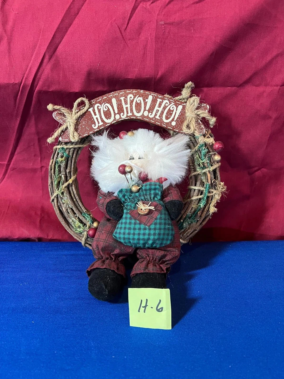 Cute Christmas Santa wreath decoration! approximately 9”x 8”. It has a rustic, handmade feel, perfect for adding a touch of holiday cheer to your home.