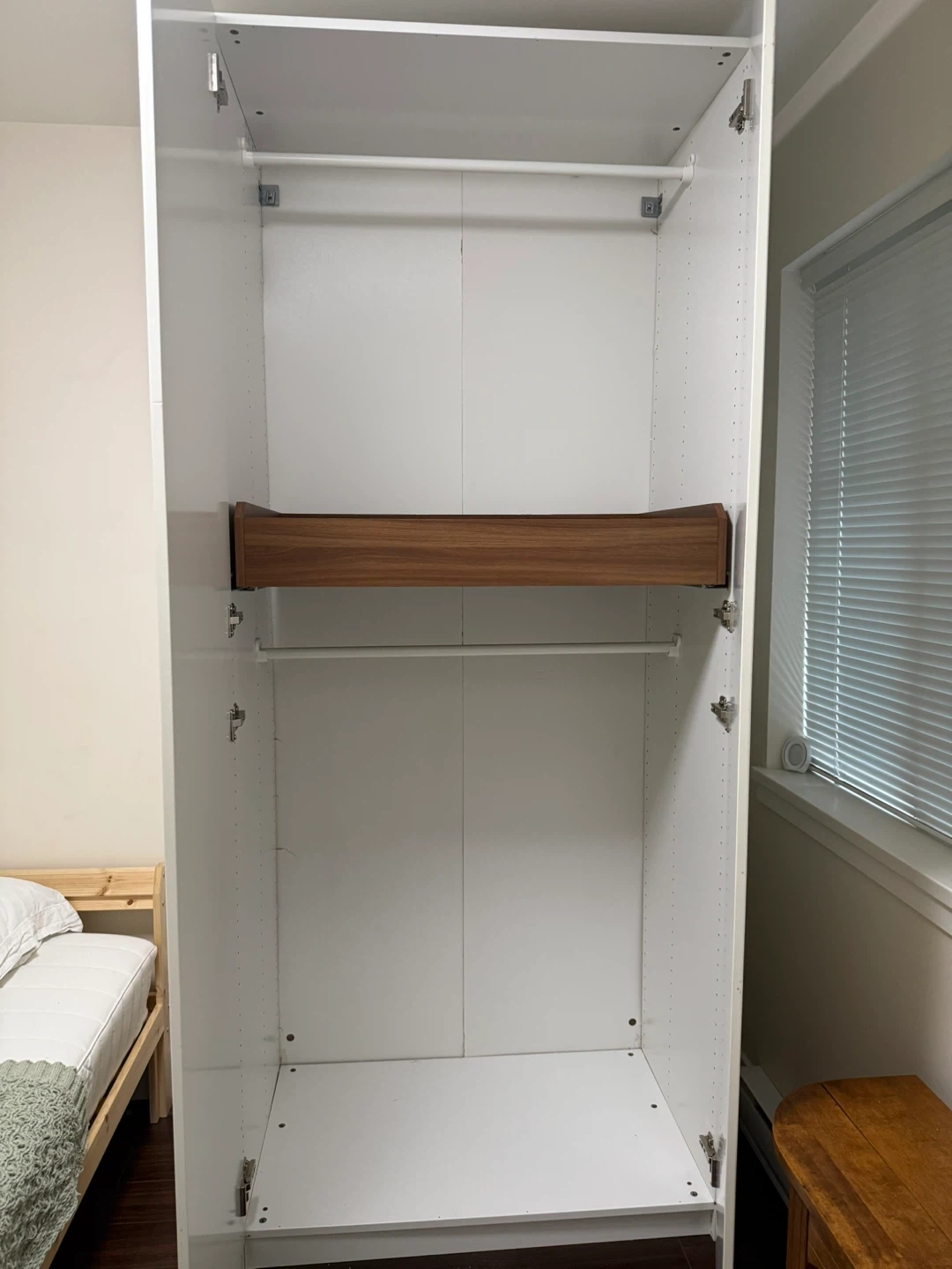 Selling a white IKEA PAX wardrobe. It's in great shape and ready to organize your clothes and belongings. Perfect for adding storage to any room!