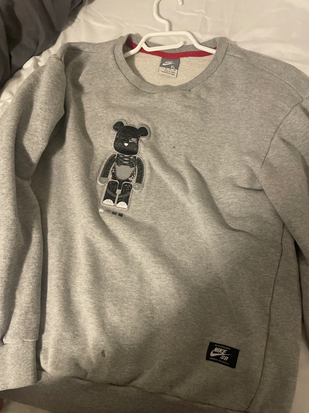 Selling a Nike SB grey sweatshirt in size XL. It has a bear design on the front. Please note there are some signs of wear. The bear is also a but washed out.