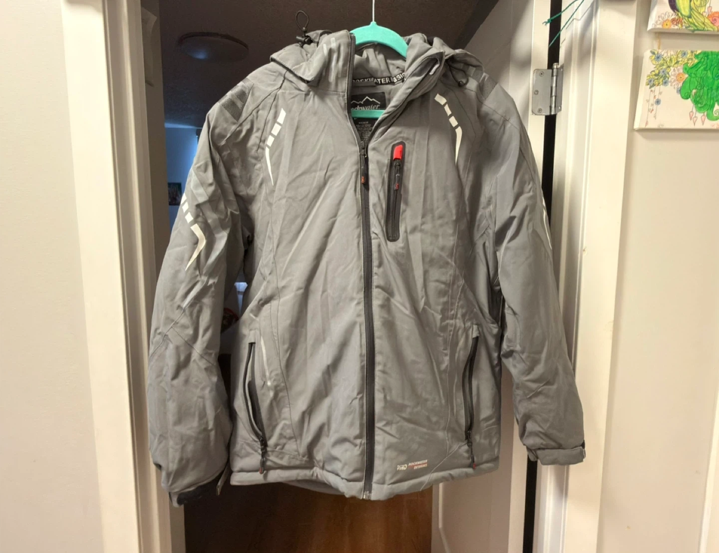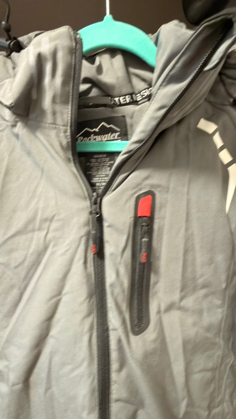 Selling a Rockwater Designs winter jacket in gray. It's in great condition and ready for the cold weather! It features a hood and several pockets for storage.