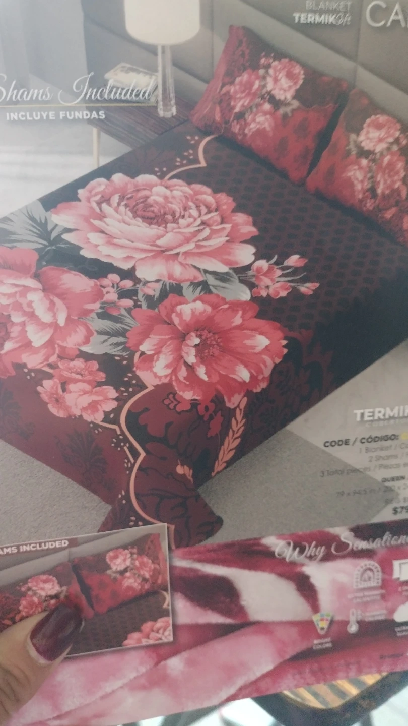 This is a Termiko blanket set that includes one blanket and two shams. This is a queen size set with a beautiful floral design. Originally priced at $79.