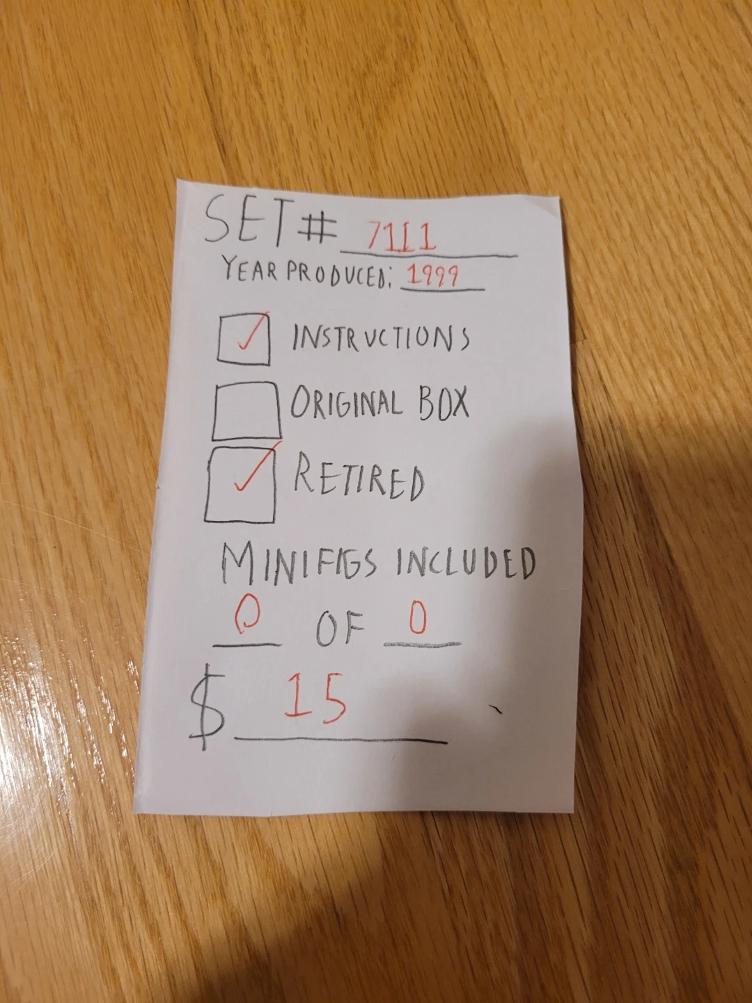 Selling a LEGO Star Wars Droid Fighter, set number 7111, produced in 1999! It's a retired set and comes with the original instructions. original box is not included.