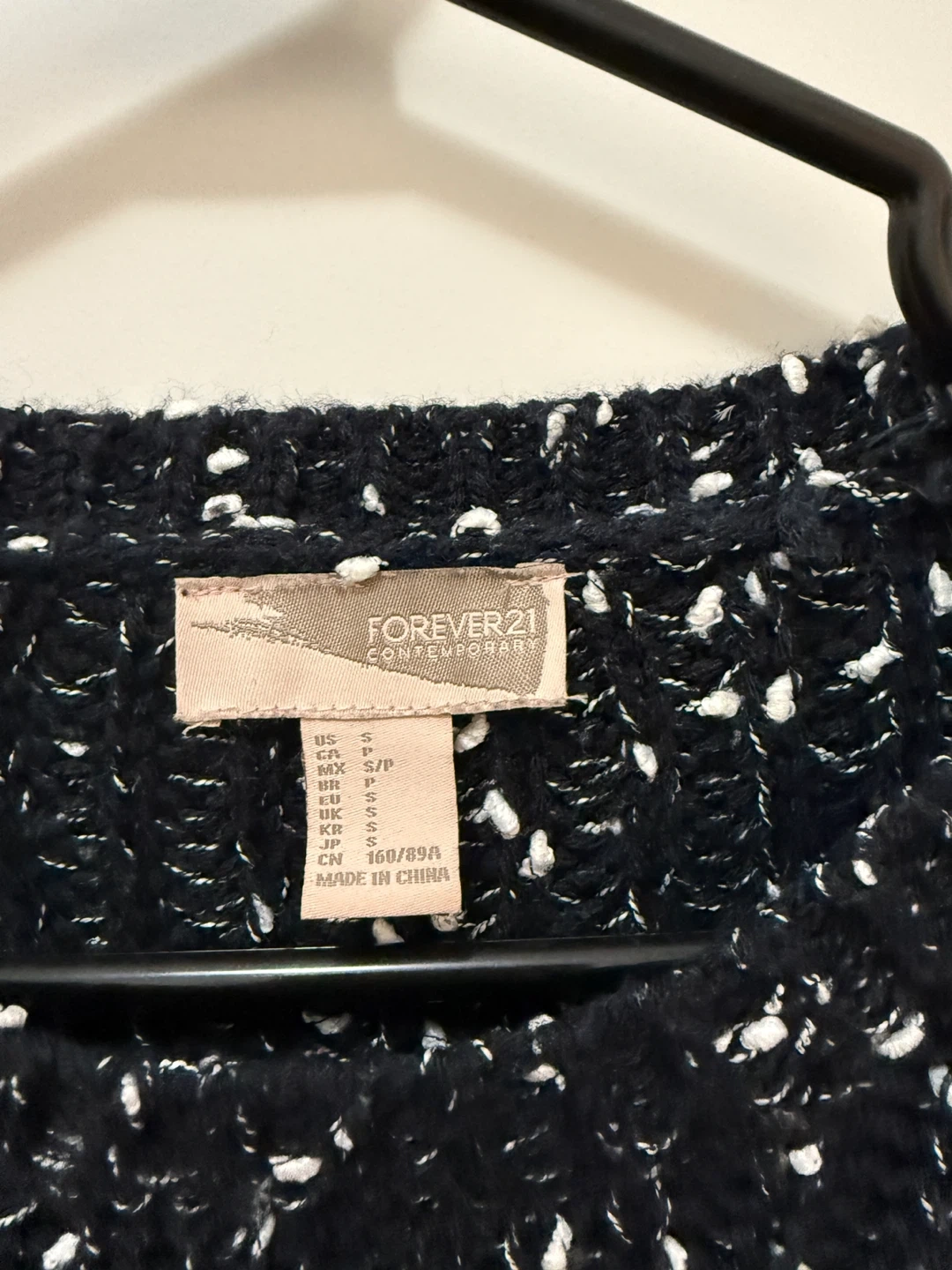 Buy & SellForever 21 Black Knit Sweater - Size SForever 21 Black Knit Sweater - Size S$4Cozy Forever 21 knit sweater in a lovely black colour. It's a size small and in great condition. Perfect for staying warm and stylish!ConditionGoodBrandForever 21WHERE TO MEETMercer and John streetView MapSELLERverifiedRKOld Toronto1000+362 reviews0 chats·0 favorites·3 views