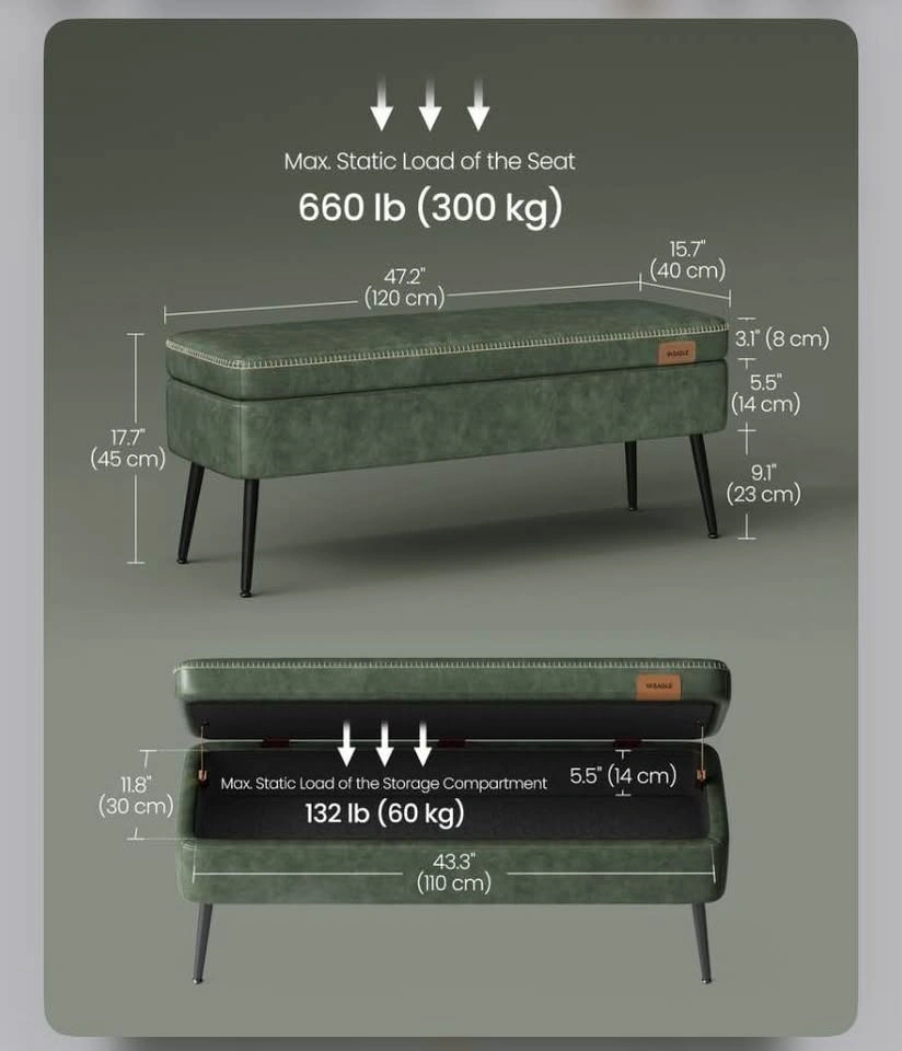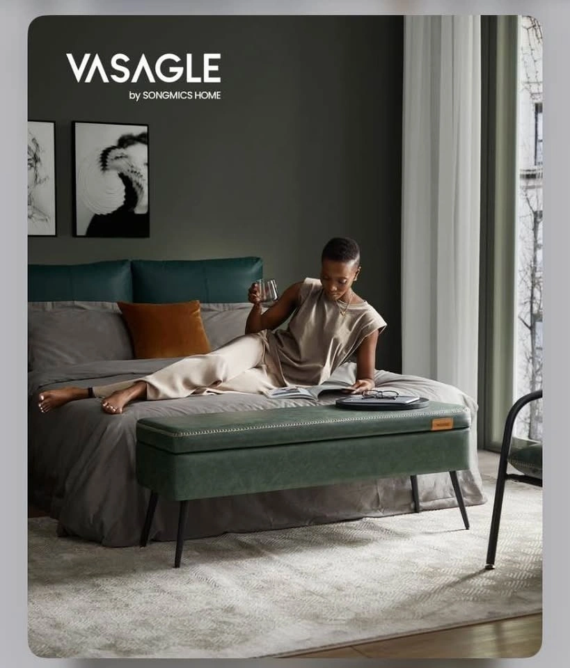 This Forest Green VASAGLE EKHO Ottoman Bench brings luxury, comfort, and organization together in one beautiful piece.