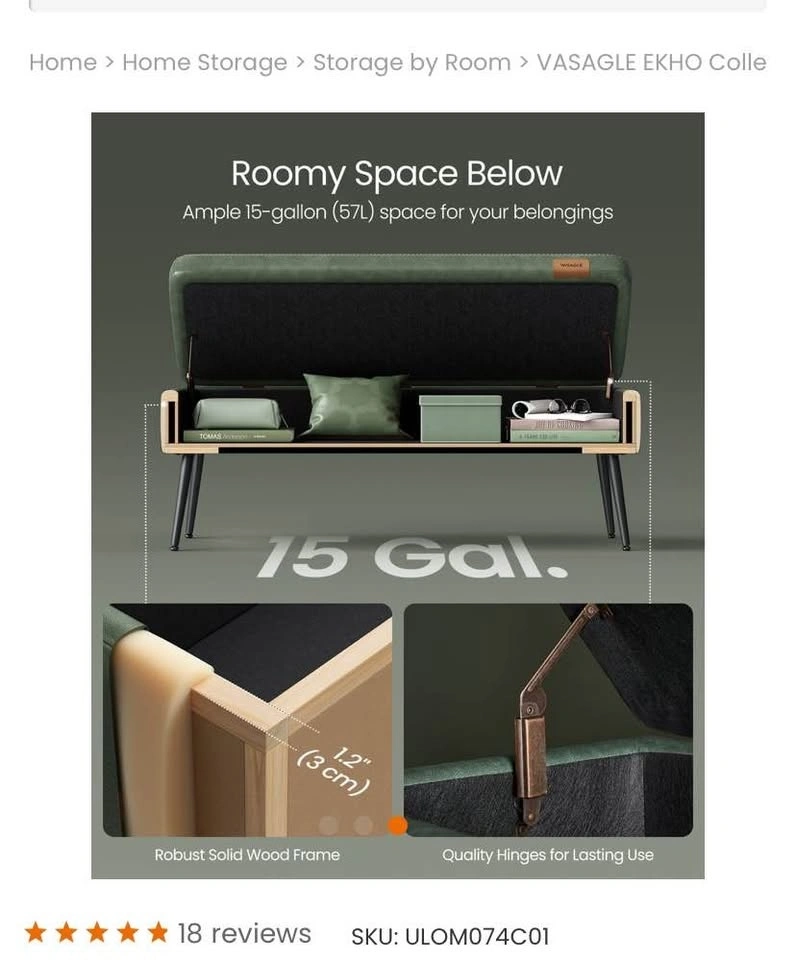 🌳 VASAGLE EKHO Storage Ottoman Bench - Brand New