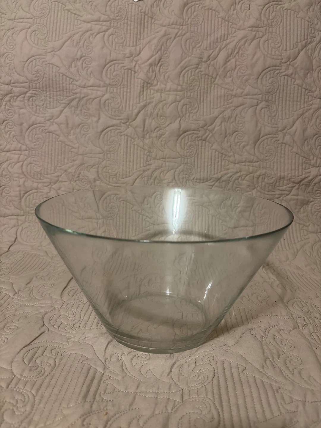 Selling a clear glass serving bowl. It's in great shape and ready to be used for salads, fruits, snacks or whatever you need.