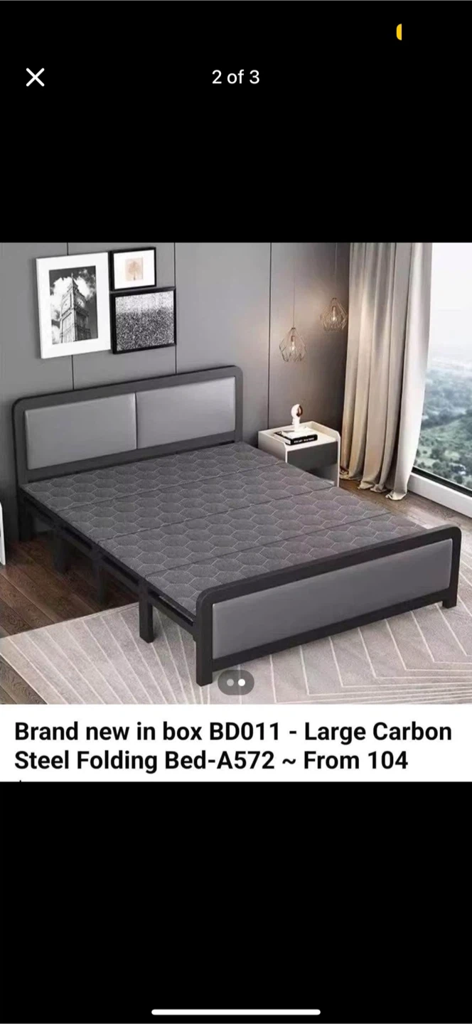 Selling a brand new, still-in-box BD011 large carbon steel folding bed. It's ready to go and would be perfect for a guest room or small space