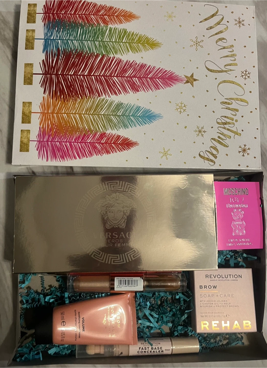Here's a fun gift set with a variety of makeup and fragrance items! It includes: