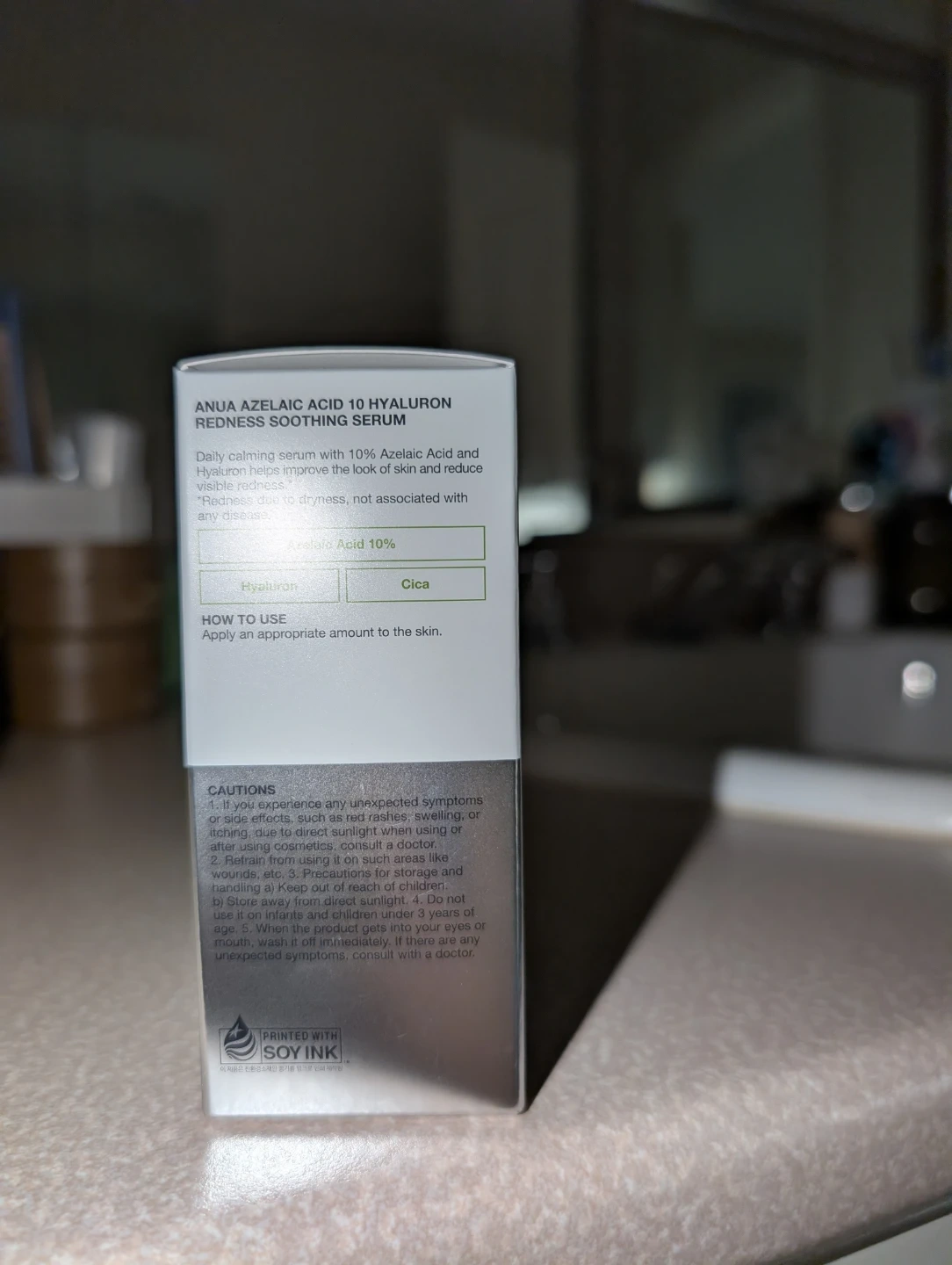Selling an Anua Azelaic Acid 10 Hyaluron Redness Soothing Serum! It's a daily calming serum with 10% Azelaic Acid and Hyaluron to improve the look of skin and reduce visible redness. It's suitable for dryness, not associated with any disease. The bottle contains 30 ml / 1.01 fl oz. Expiry date is 2028 February 24