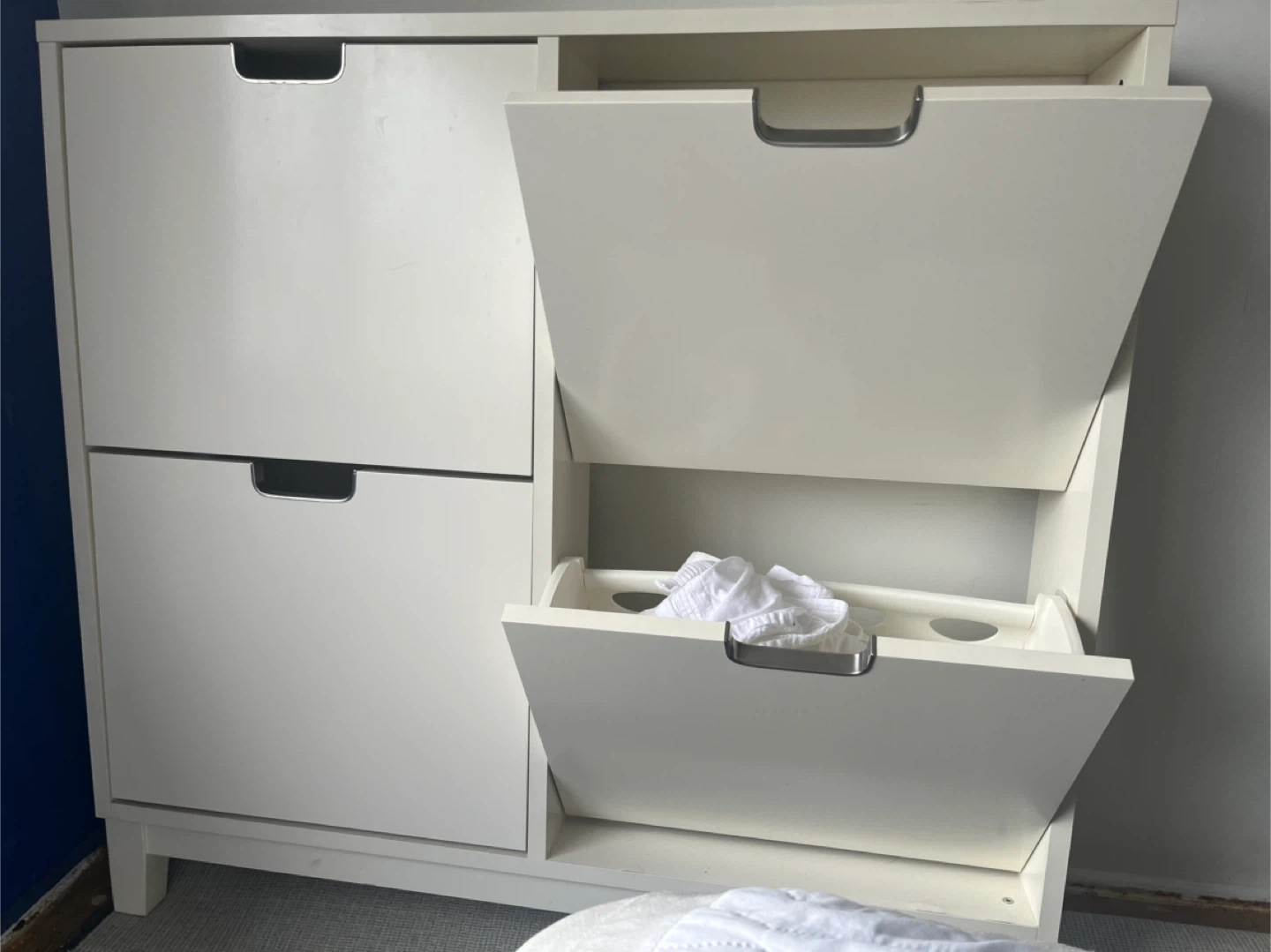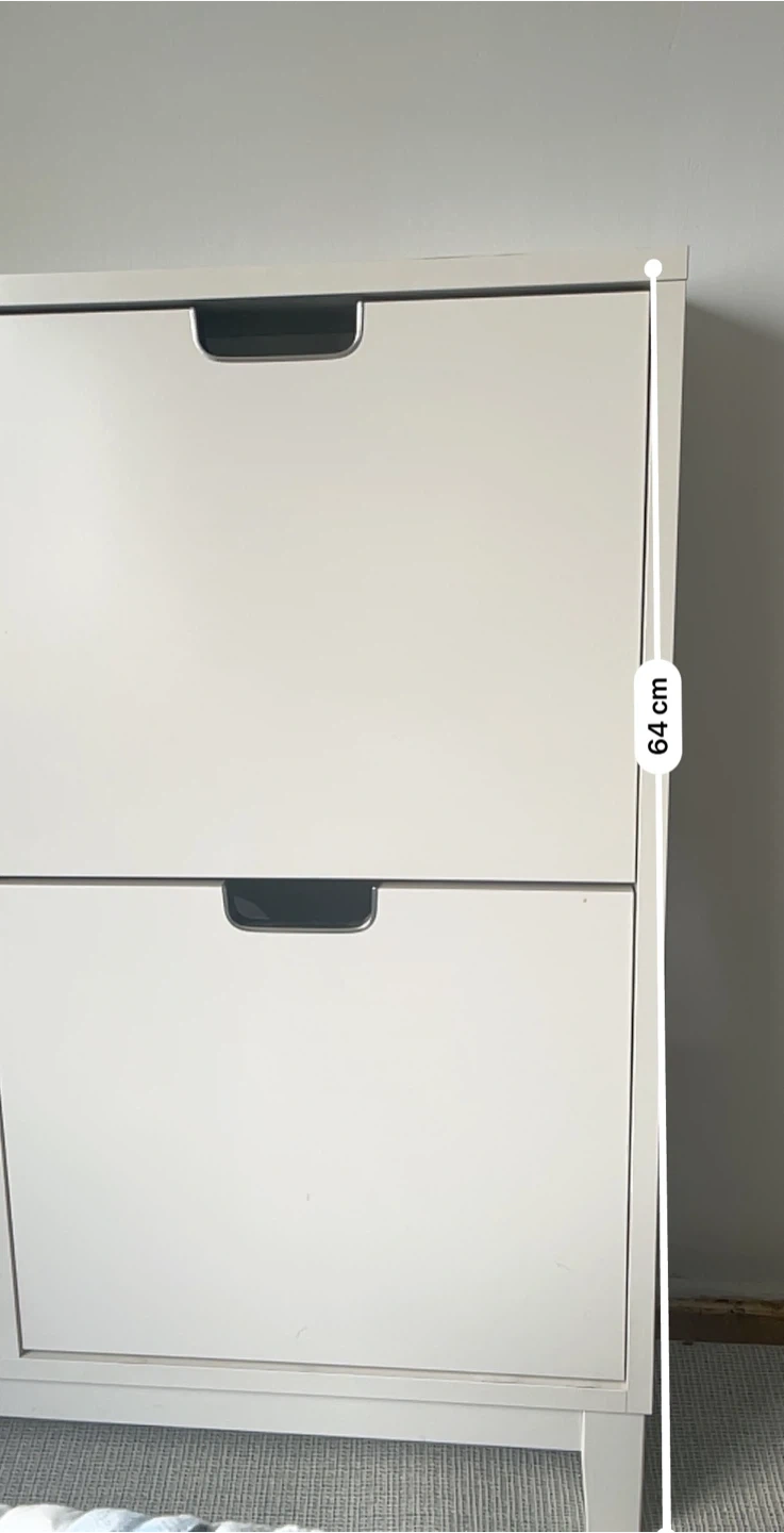This white shoe cabinet is perfect for keeping your shoes organized and out of sight! It's in good condition .. Dimensions: - Height: 64 cm - Width: 1.06 m