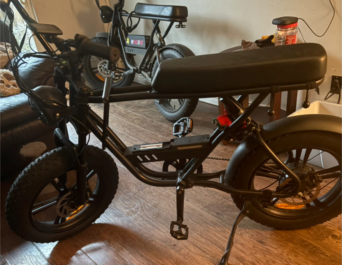 Windone k2 urban explorer 500W motor 48V battery 32KMH-40KMH fun bike good first e-bike or if ur a person that likes to modify them it’s a god candidate for that as well I’m looking to get a diff bike so this one gotta go comes with battery and charger