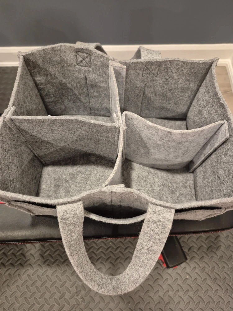 Selling a felt diaper caddy organizer! It's in great condition and perfect for keeping all your baby essentials tidy. The grey colour is neutral and will fit with any nursery decor! Great for storing diapers, wipes, and other baby necessities.