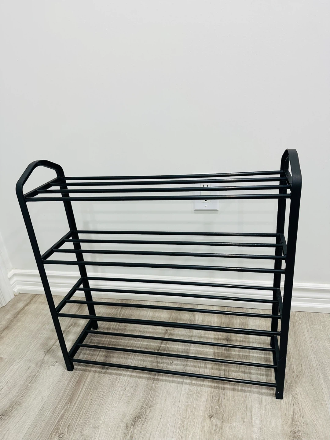 Here's a handy black metal shoe rack to keep your entryway or closet organized! It's in great shape and ready to help you declutter your space