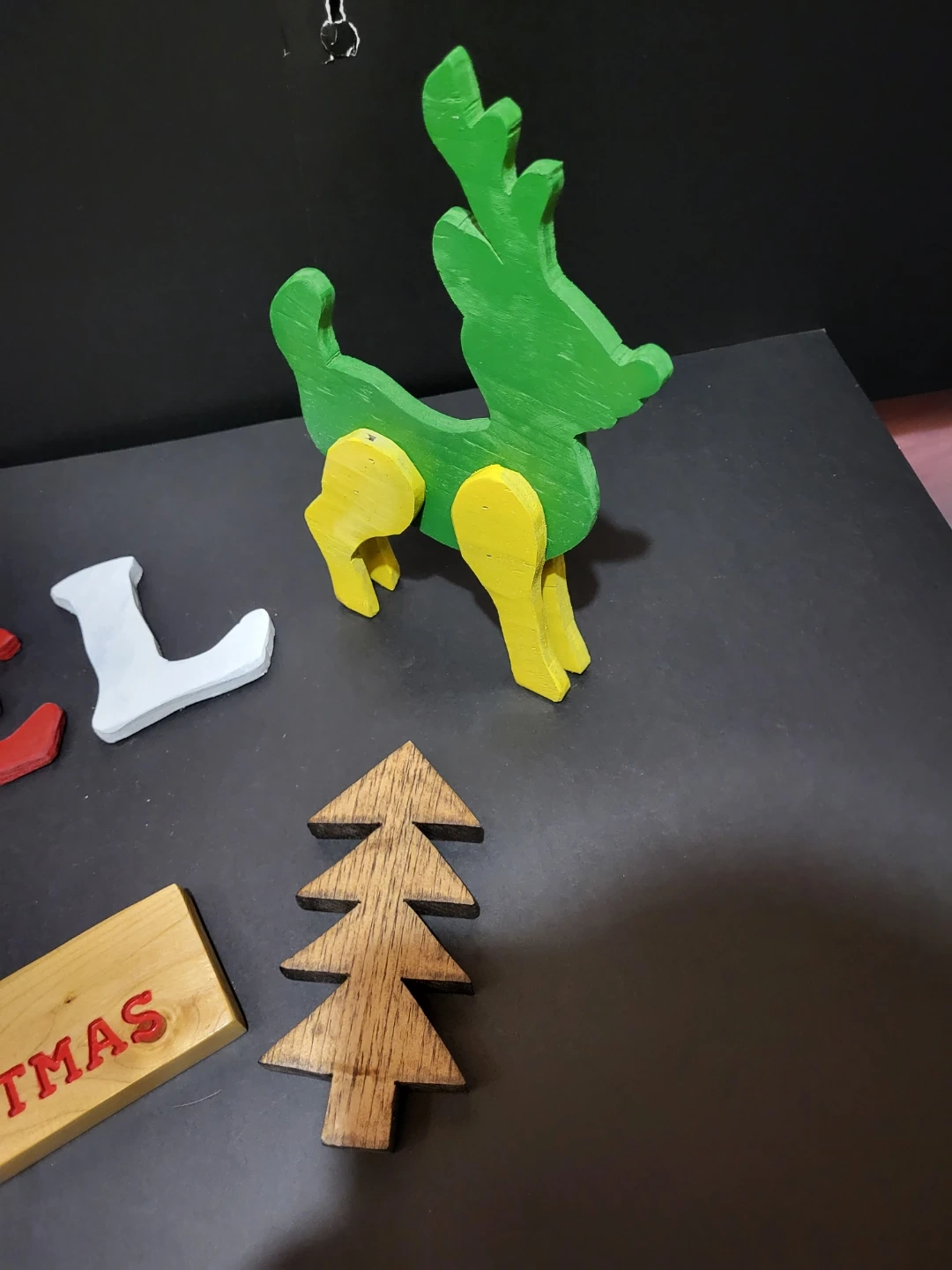 Selling a set of cute wooden Christmas decorations! Includes the word "NOEL" in individual red and white painted letters, a "Merry Christmas" sign, a wooden Christmas tree, and a green and yellow reindeer. Perfect for adding some festive cheer to your home this holiday season. The price is for them all.