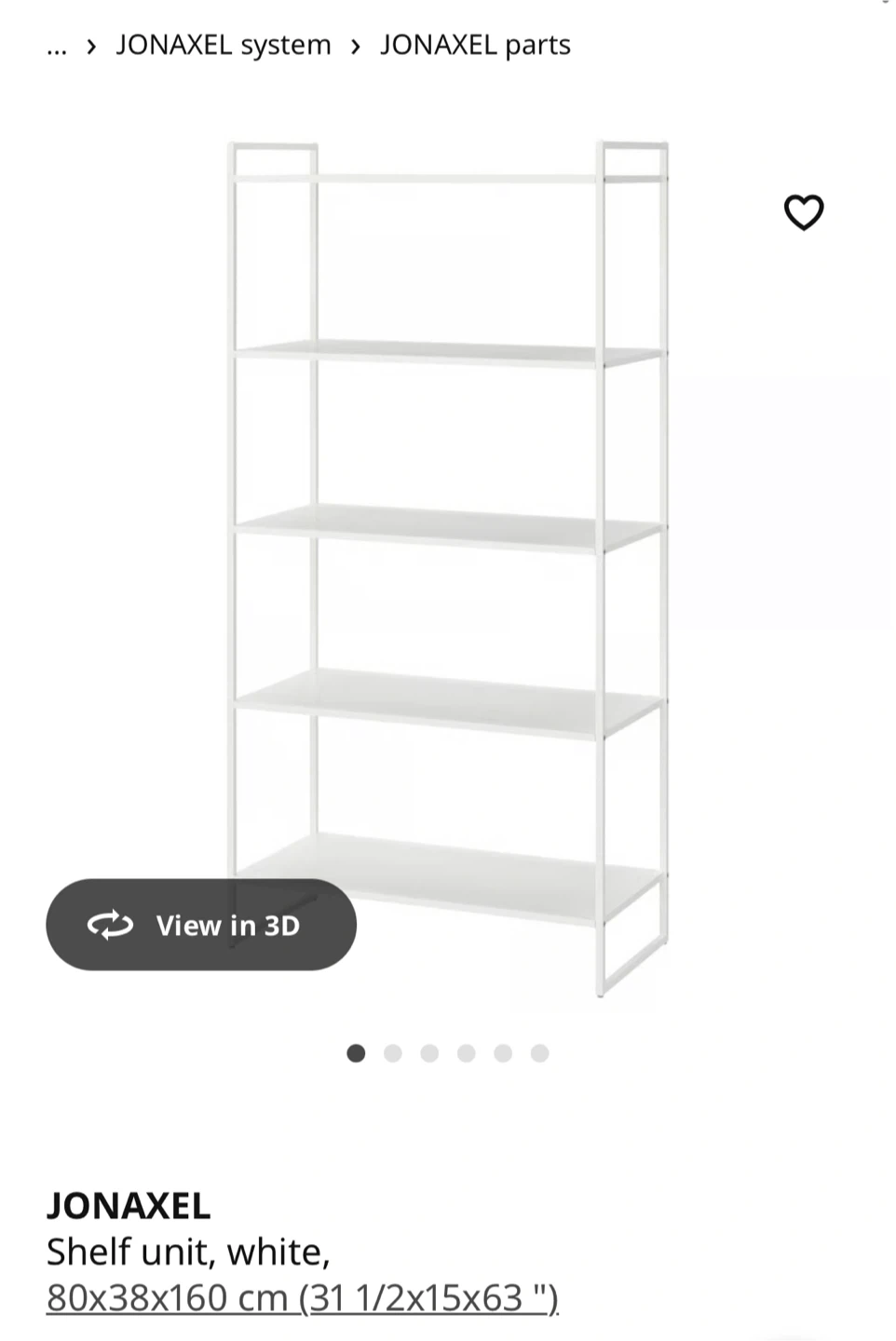 Selling a white IKEA JONAXEL shelf unit. New and measures 80x38x160 cm (31 1/2x15x63"). Perfect for adding some extra storage space!