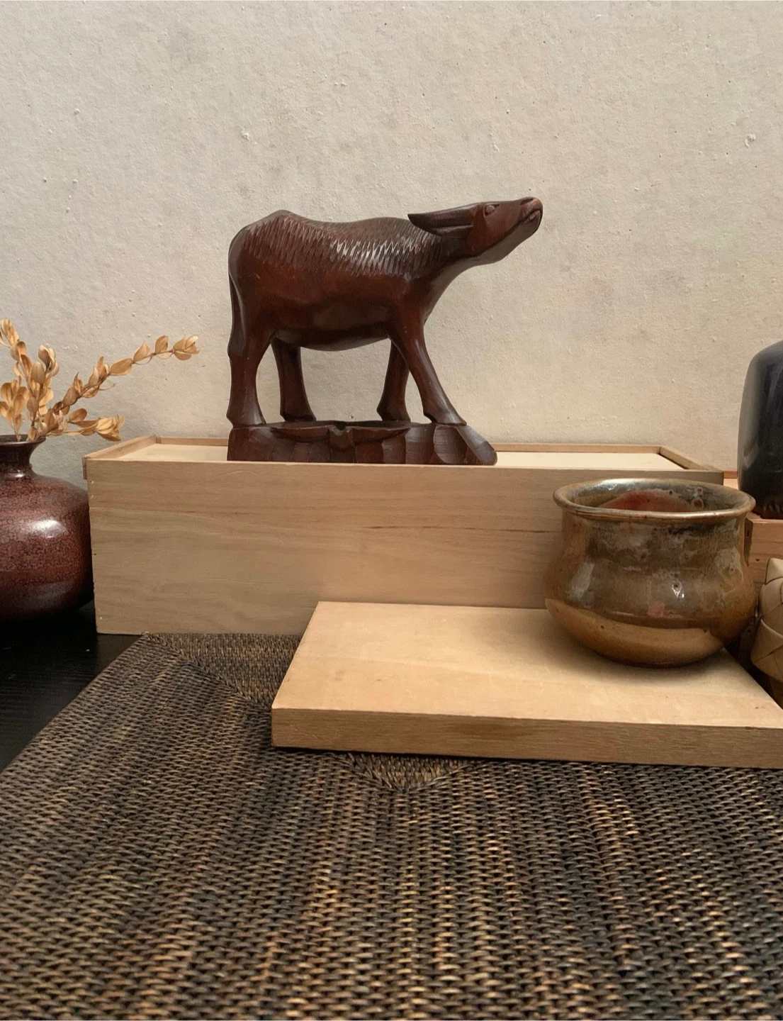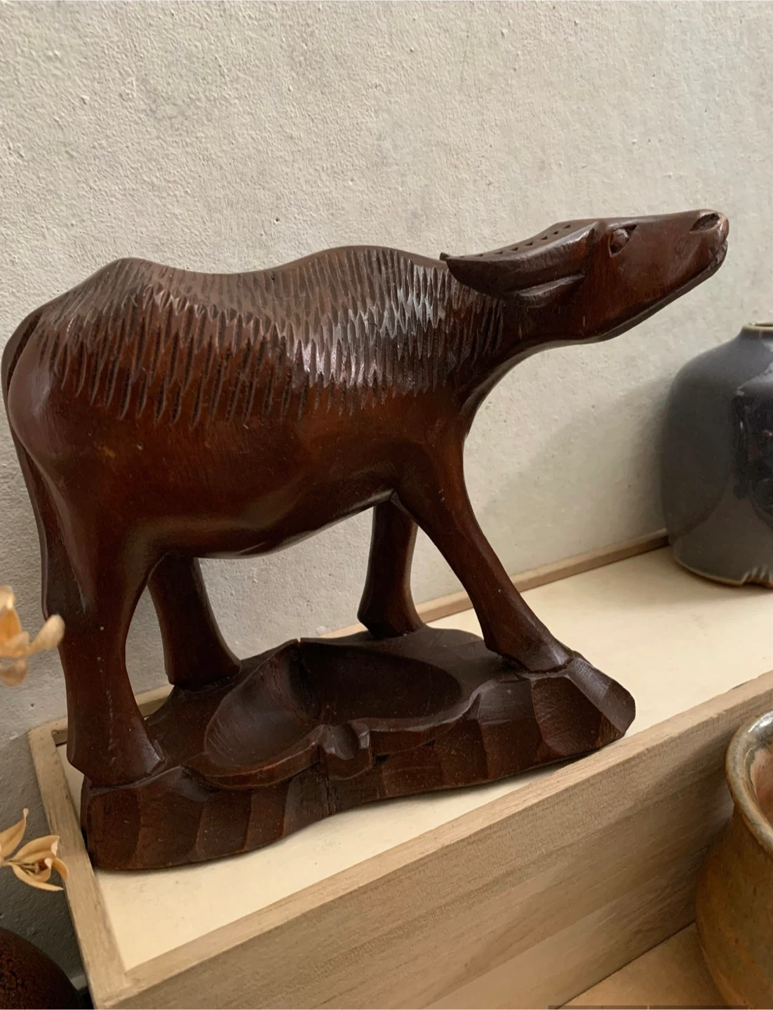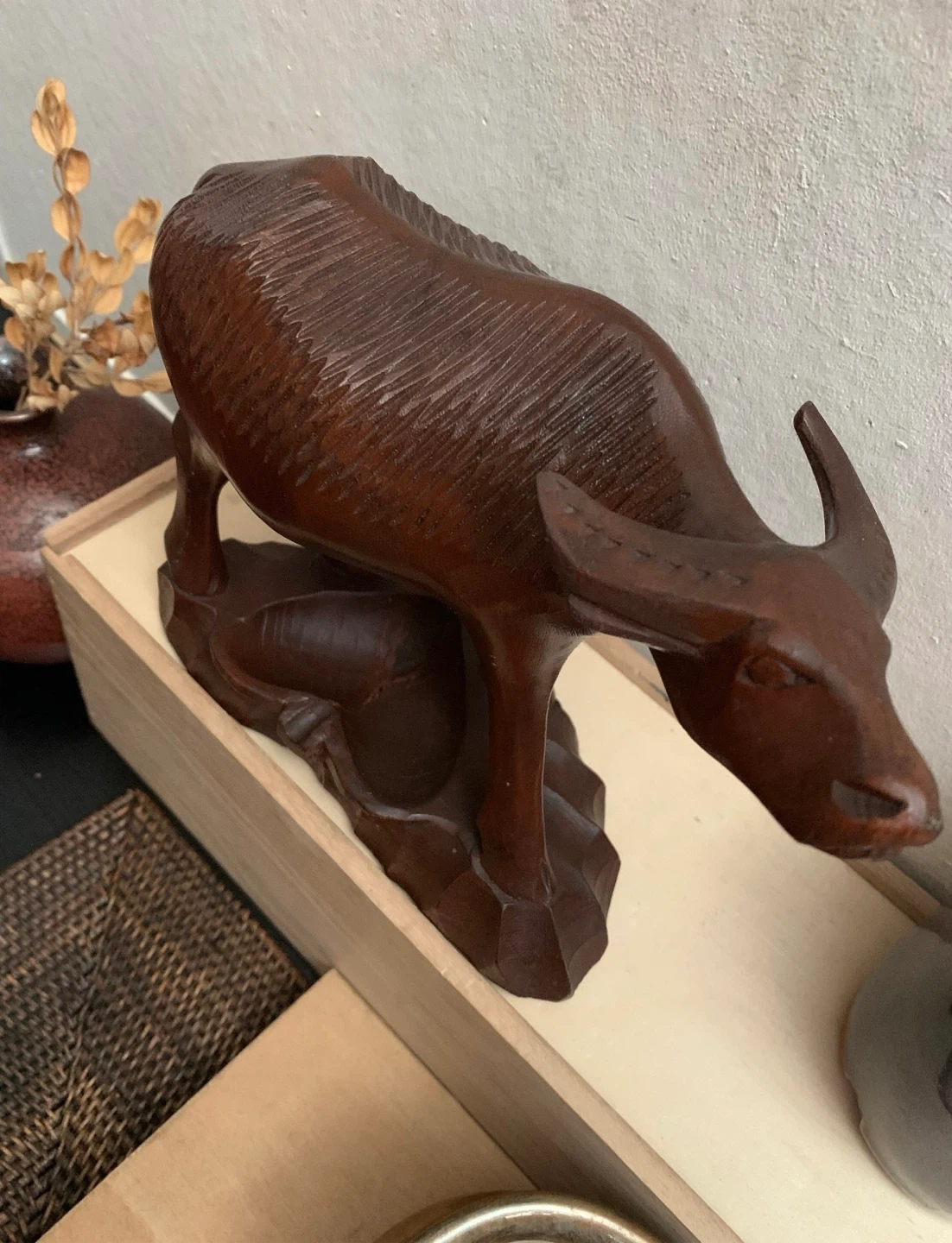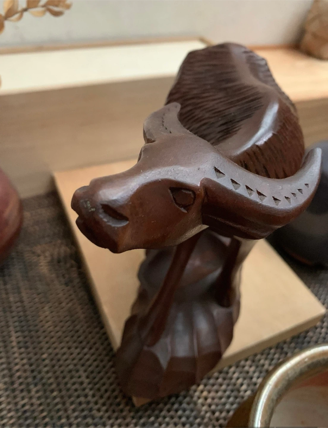 •This is a beautifully hand carved wooden figurine statue of the Asian water Buffalo.