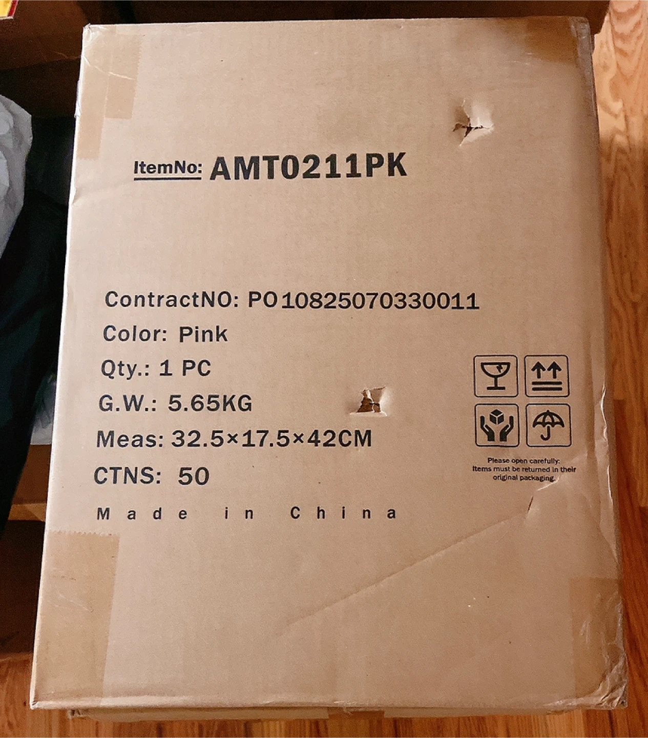 The box is included. The item number is AMT0211PK. The measurements are 32.5 x 17.5 x 42 cm
