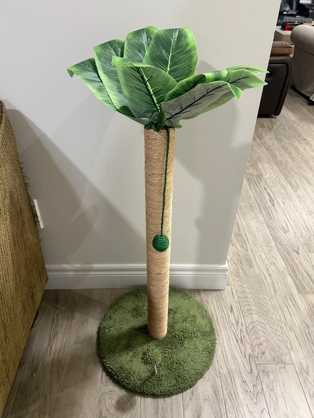 Selling a cat scratching post designed like a palm tree! It has a sturdy base and a sisal-wrapped post for your cat to scratch. The leaves add a fun tropical touch to your home decor, and it’s sure to keep your kitty entertained! Yay!it’s amazing!