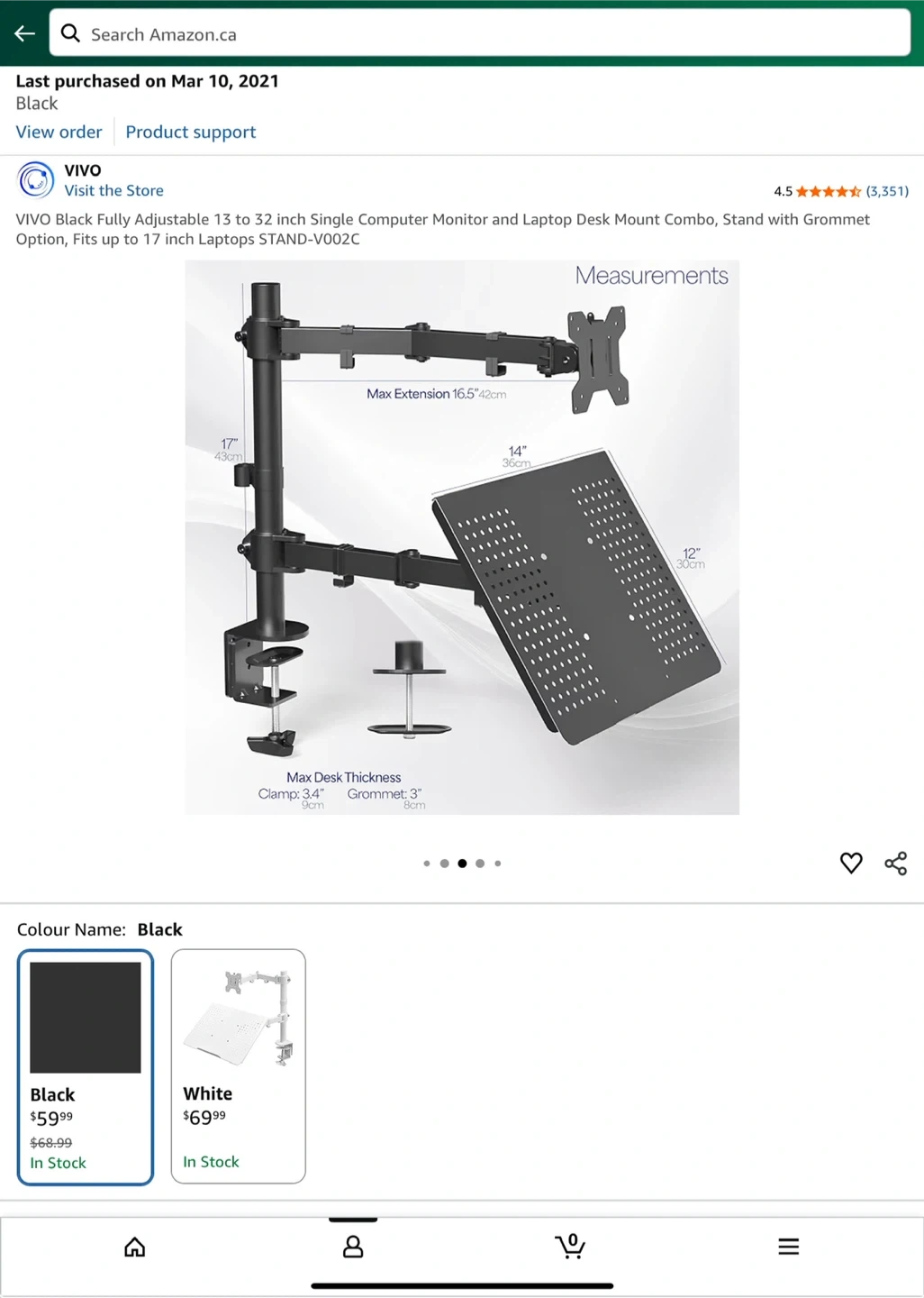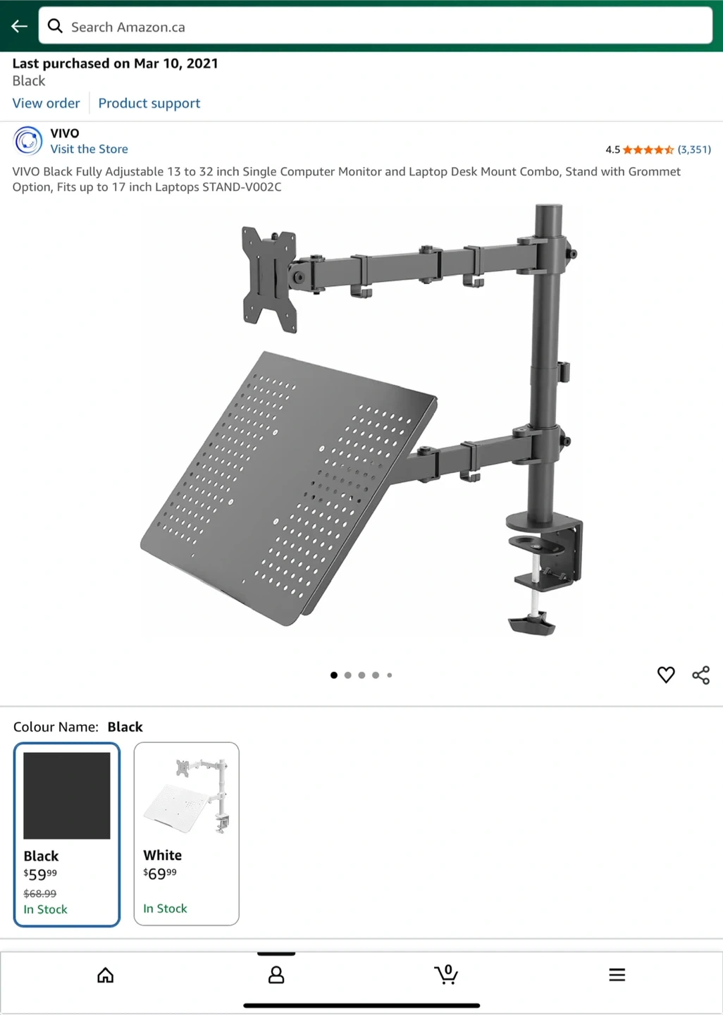 Selling a VIVO black fully adjustable desk mount combo for monitors and laptops. It fits 13 to 32 inch single computer monitors and laptops up to 17 inches. It comes with a grommet option. Originally bought for $90.39 and comes with the box. I never really use it.