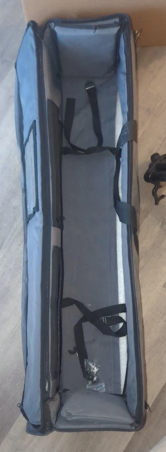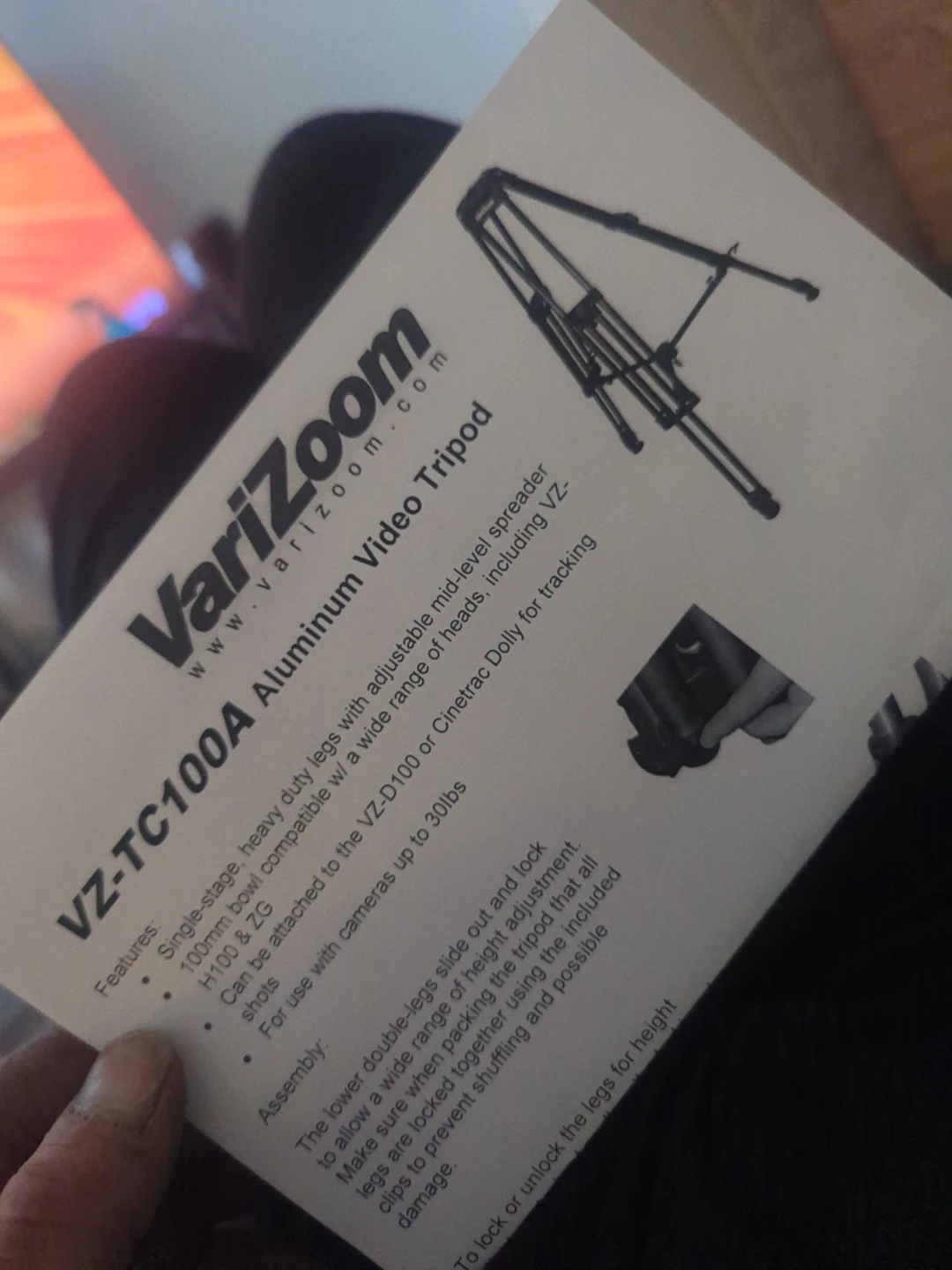 This VariZoom Tripod is a solid piece of equipment for any videographer or photographer needing stability and versatility. This item is used. It comes with a carrying case for easy transport and protection.