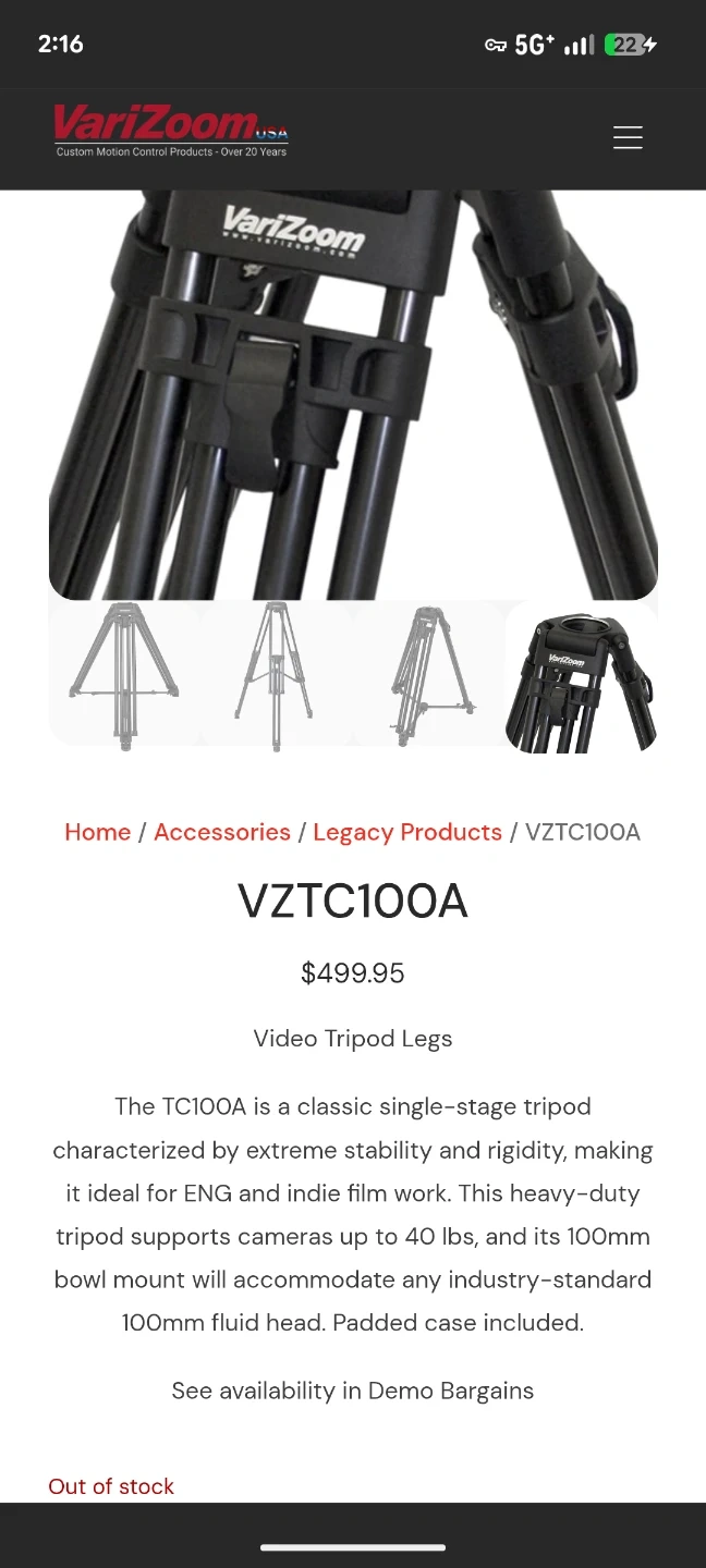 This VariZoom Tripod is a solid piece of equipment for any videographer or photographer needing stability and versatility. This item is used. It comes with a carrying case for easy transport and protection.