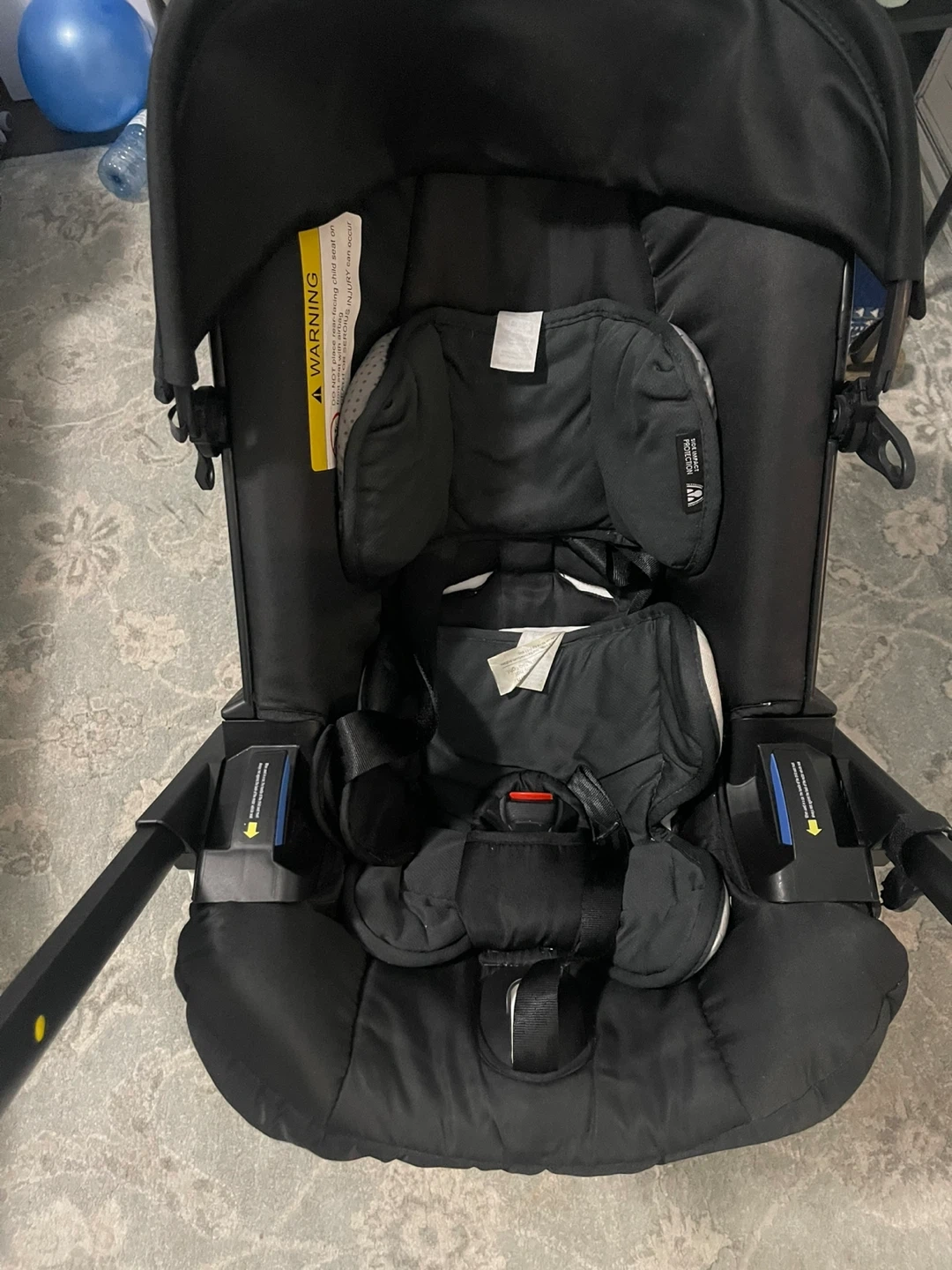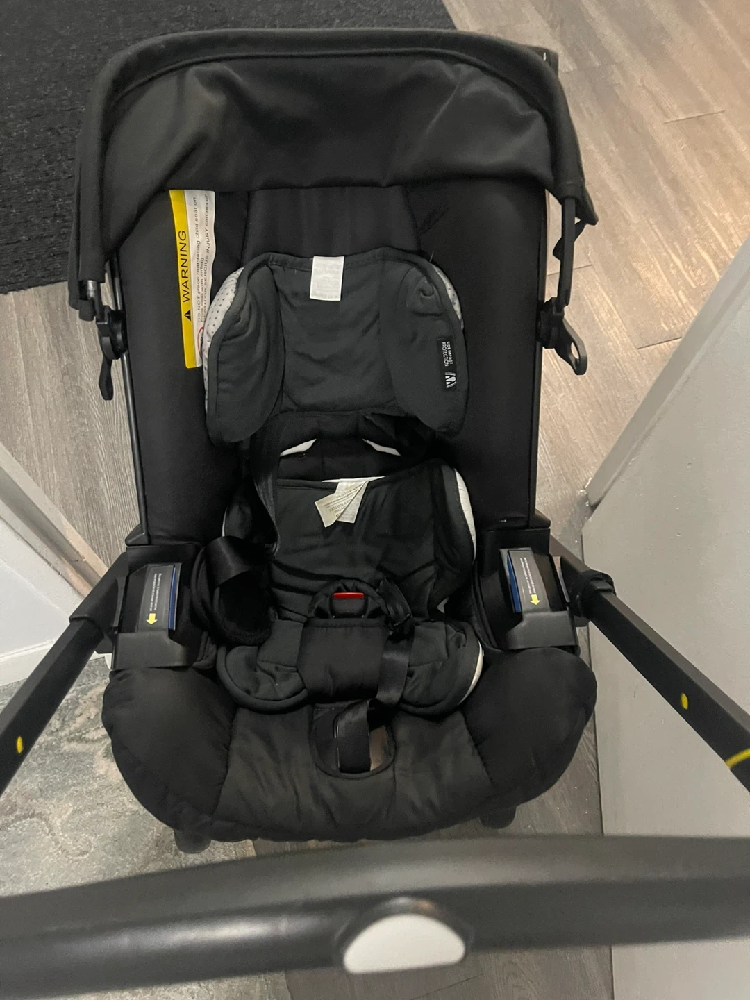 Selling a Doona infant car seat and stroller in black. It's in great condition and ready for a new family! This is a convenient and safe option for transporting your little one.