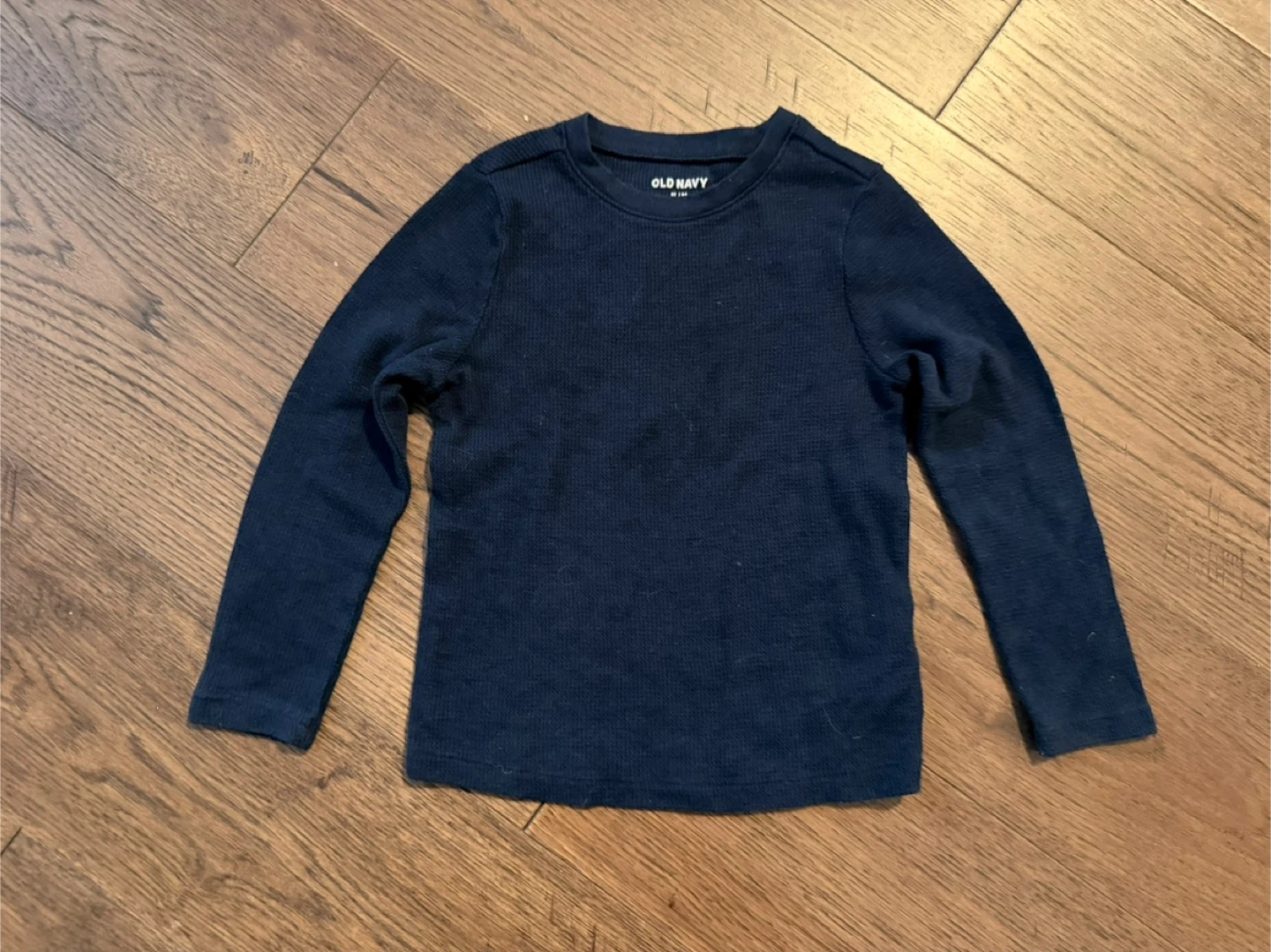Selling two Old Navy long sleeve shirts in size 5T. They are in great condition and perfect for layering or wearing on their own! The shirts are a dark navy colour.