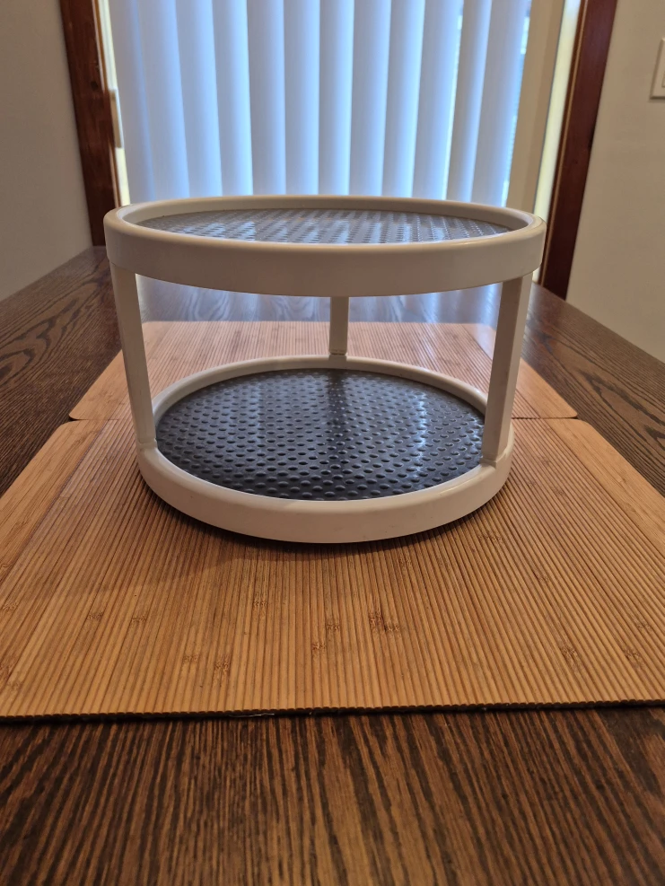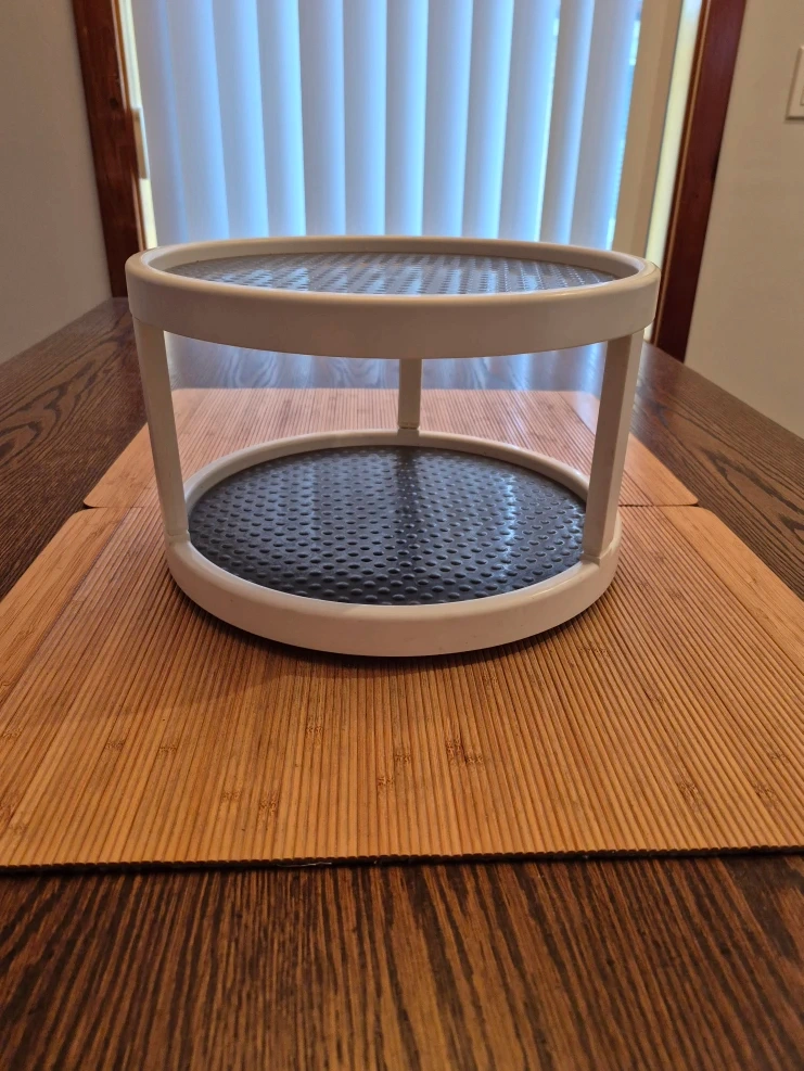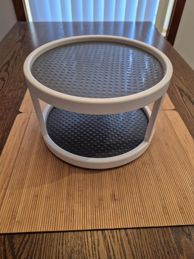 Copco 2-level non-skid Lazy Susan (spinner turntable) for spices, etc. Works great either in a cabinet or on a countertop. Spins smoothly. Non-skid rubber tray surfaces. πŸ“ 12" diameter (width), and 7.5" high. πŸ“· See all photos. Good used condition. πŸ‘‰ Pick up from Yonge & St Clair.