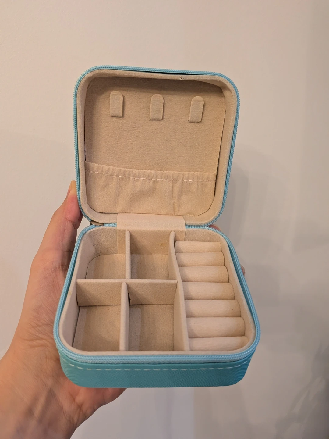 Here's a cute teal travel jewelry box! It's perfect for keeping your jewelry organized when you're on the go