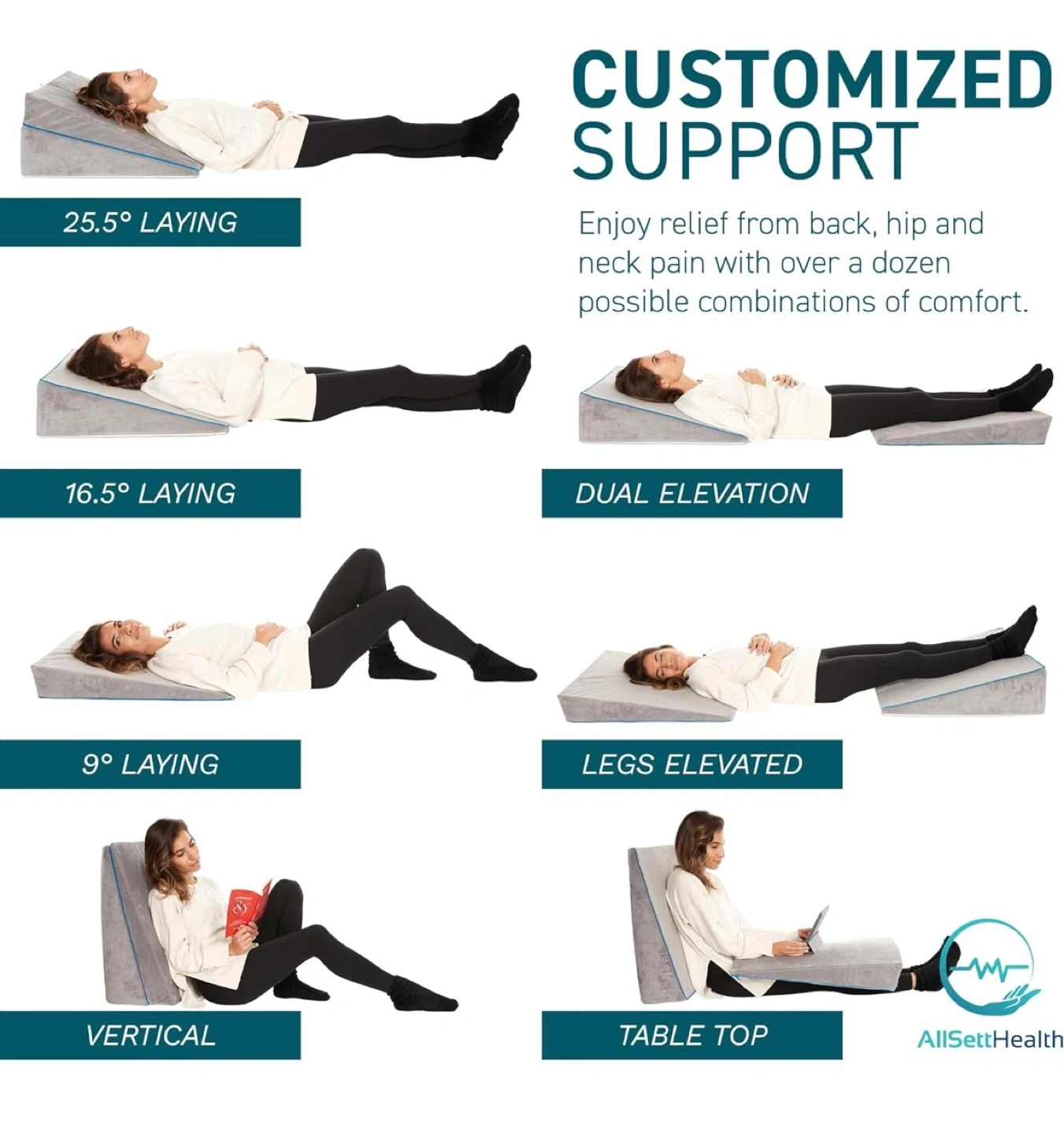 Combination Zipper Technology | Memory Foam Bed Wedge pillow for sleeping, Acid Reflux, Anti Snore, Machine Washable