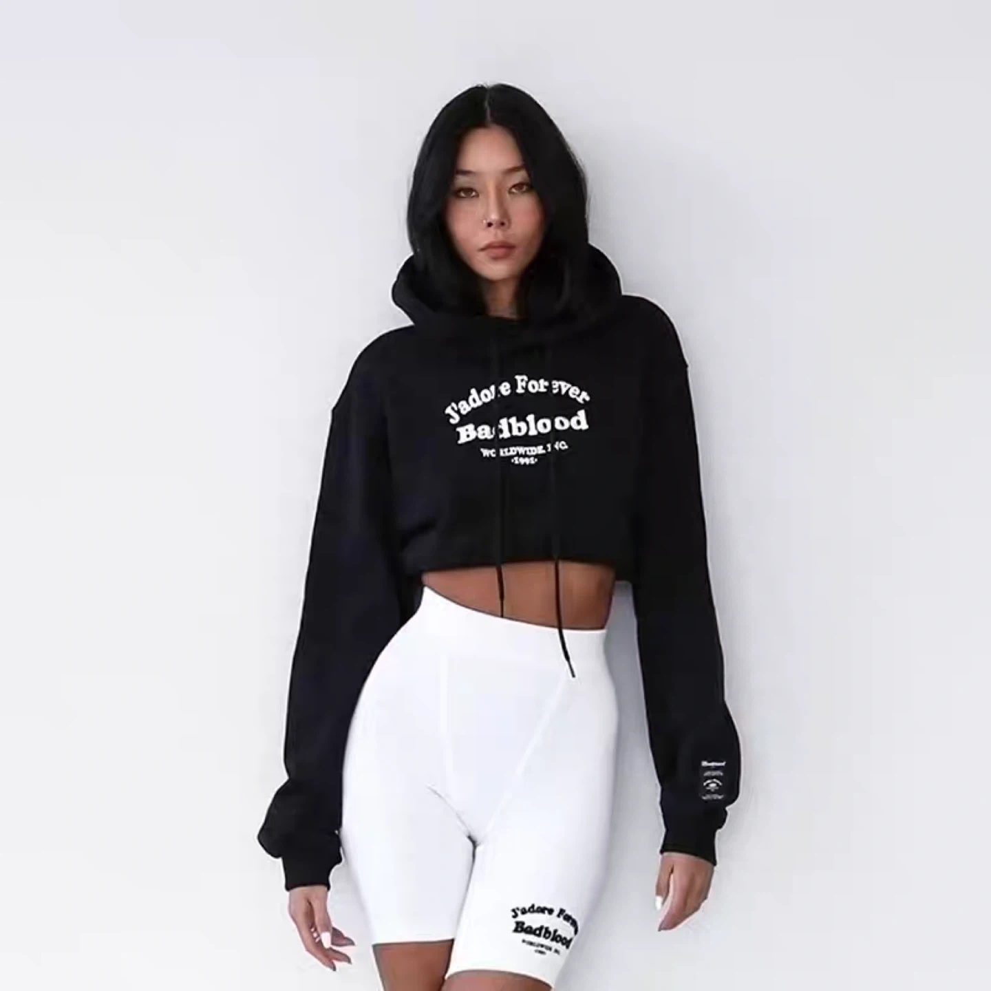 Korean Badblood J'adore Forever Cropped Hoodie - Black