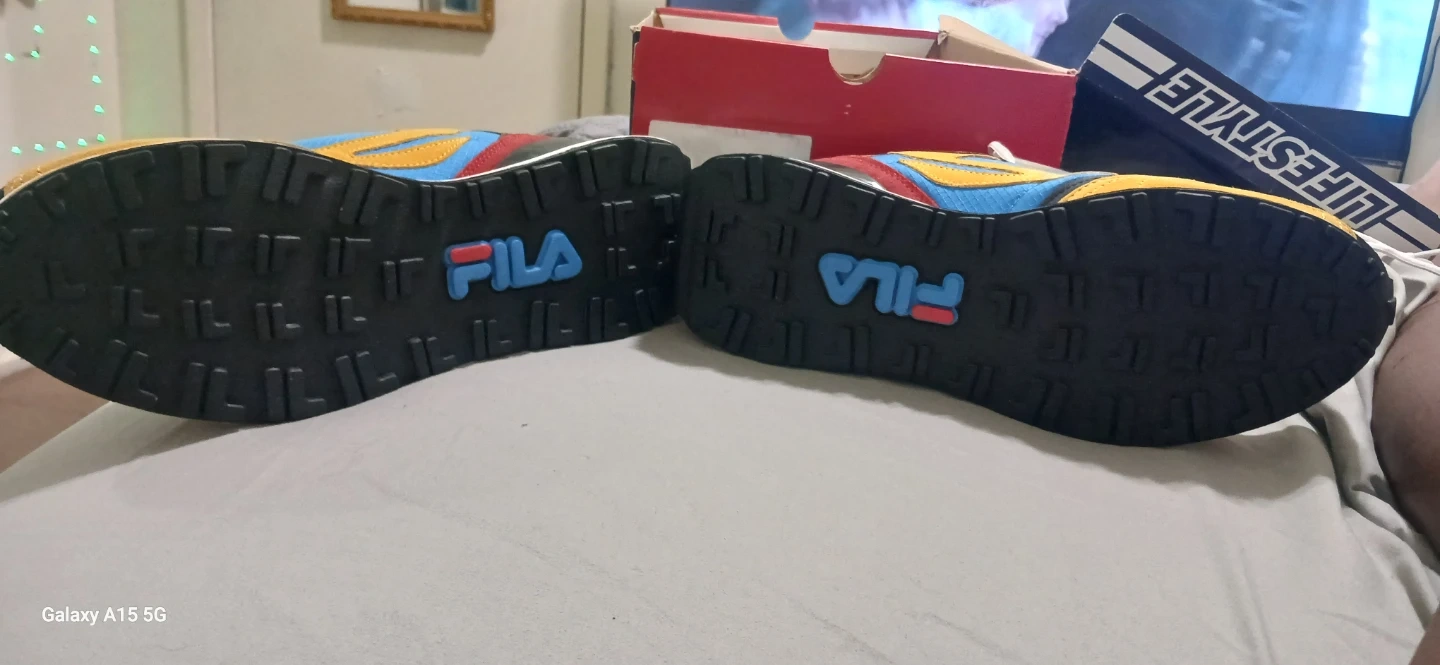 Selling a pair of Fila Valado men's shoes in size 11. These shoes feature a stylish design with a mix of colors including blue, yellow, red, and black. They come with the original box!