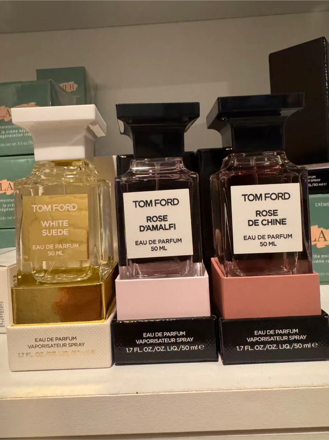 Selling three Tom Ford Eau de Parfum bottles, each containing 50mL. Available scents include White Suede, Rose D'Amalfi, and Rose de Chine. These are great fragrances, perfect for anyone looking to try a new scent!