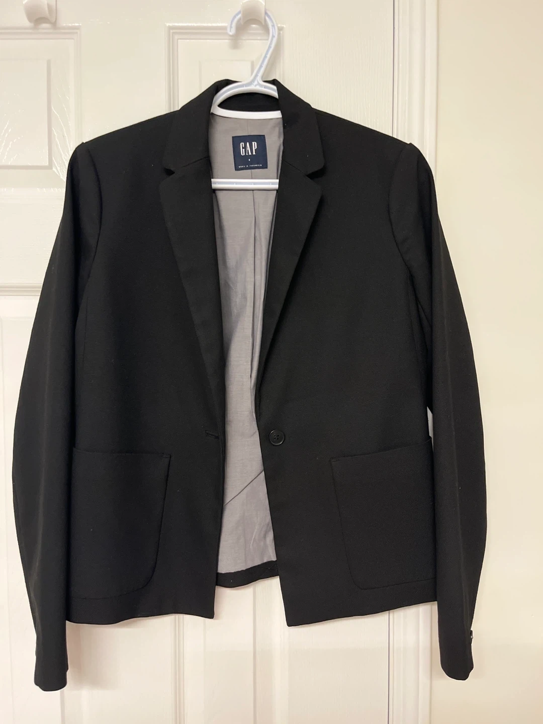 Selling a gently used black blazer from GAP. It's a size small and in great condition. Perfect for adding a touch of sophistication to any outfit!