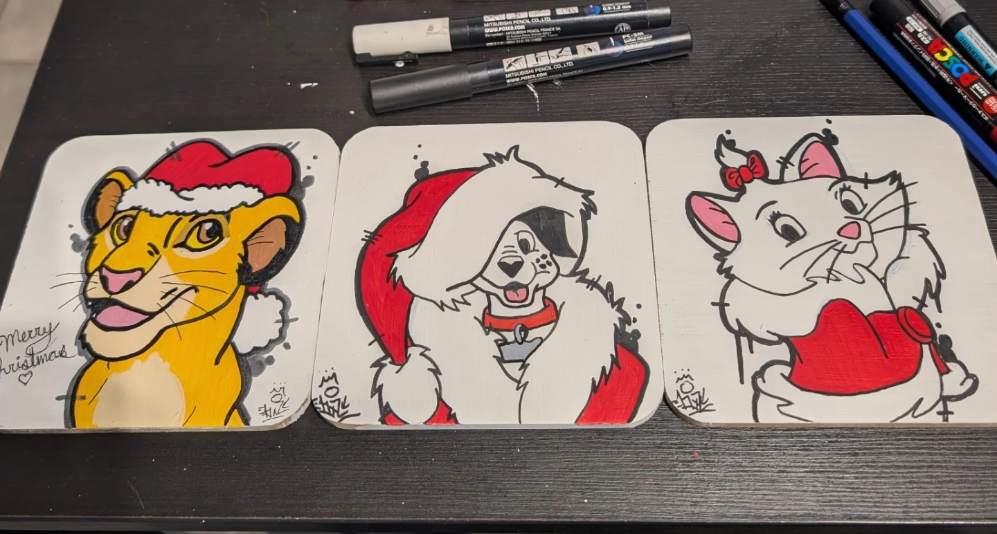 Jolis dessins de Noël de personnages Disney peints à la main!