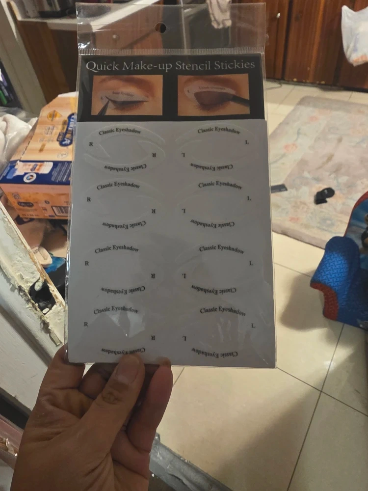 Quick Eyeliner & Eyeshadow Stencil Stickies with a variety of shapes. Includes 4 models for eyeshadow and 6 models for eyeliner. Each model has 4 pairs or 6 pairs.